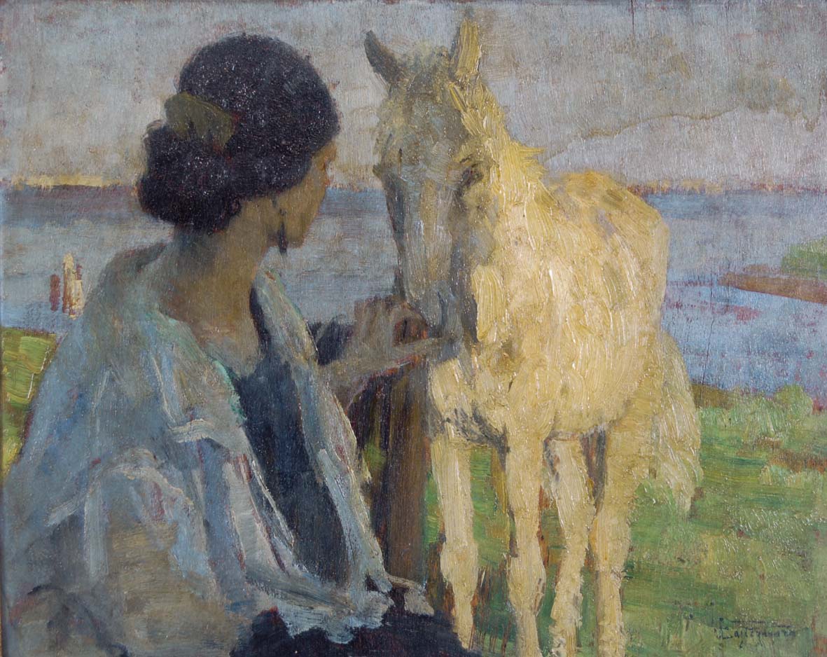 CASTEGNARO FELICE Montebello V. 1872 - Zero Branco 1958 Bruna e Bianca olio su tavola 33x41 firma in basso a destra e al retro Esposizioni: Mostra Commemorativa della Fondazione della Biennale Venezia 1935 - etichetta al retro