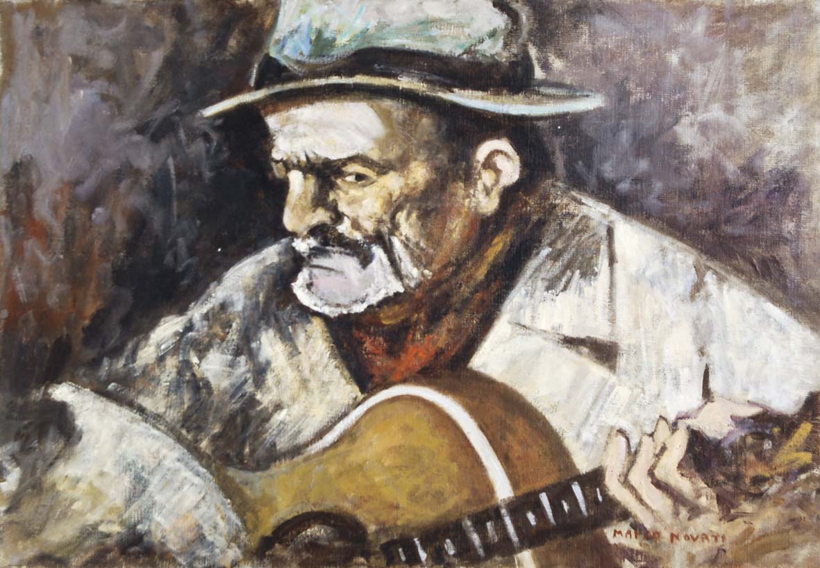NOVATI MARCO Venezia 1895 - 1975 Suonatore olio su tela 35x55 firma in basso a destra e al retro Autentica di Luciano Ravagnan Venezia su foto