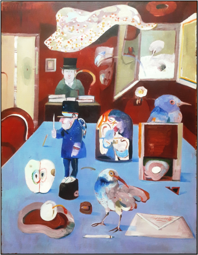 POSSENTI ANTONIO Lucca 1933 - 2016 "Senza titolo" Olio su tavola cm 51x67 del 2000. Firmato sul fronte, in basso a destra, e sul retro. Autentica ed archiviazione su foto a cura del maestro e della galleria Fantasio & Joe di Lucca.