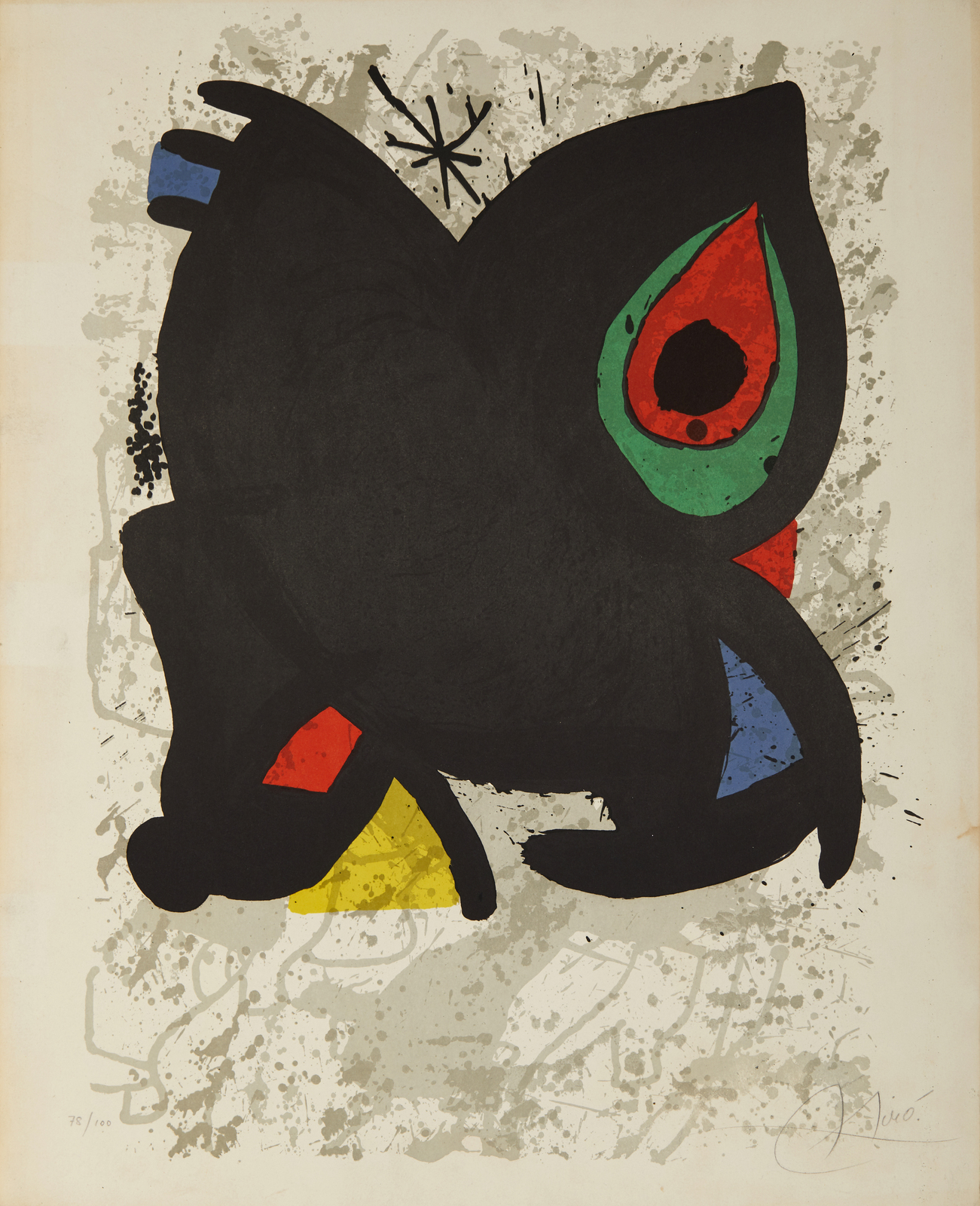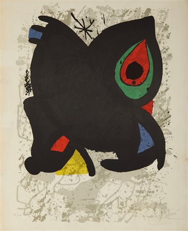 MIRO' JOAN (1893 - 1983) Grand Palais. 1974. Litografia. Cm 52,30 x 64,70. 78/100. Tiratura e firma in basso a matita. Pubblicata da Réunion des Musées Nationaux, Paris. Dimensione lastra: 61x42.1 cm. Pubblicazione: Fernand Mourlot n. 942. Lievi difetti.