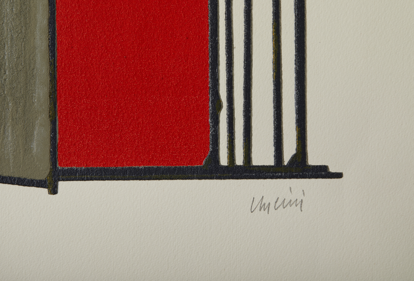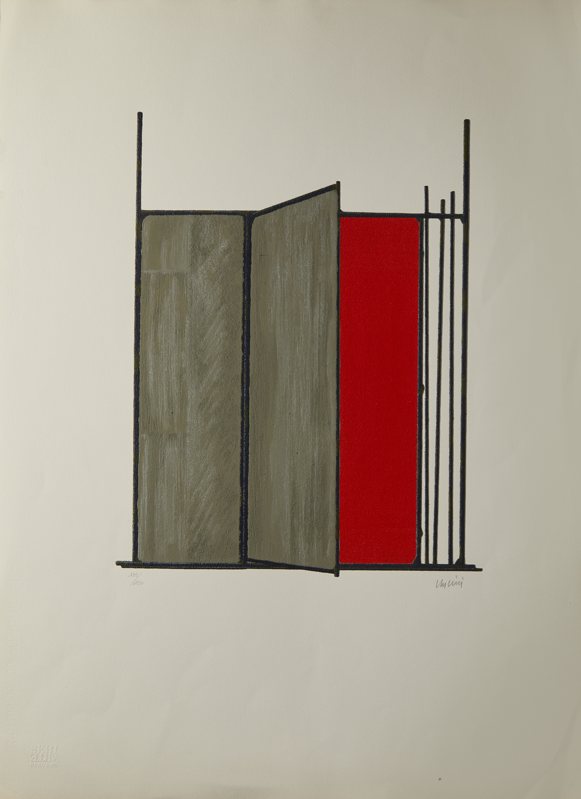 UNCINI GIUSEPPE (1929 - 2008) Spazicemento. 1998. Serigrafia materica. Cm 56,00 x 76,00. 139/150. Tiratura e firma in basso a matita. Serigrafia materica ad effetto cemento, eseguita con 20 passaggi di colore su carta Fabriano da 300 gr. Edizione totale: 150 esemplari numerati da 1 a 150. Stampatore: Seri-Arte. Bergamo.