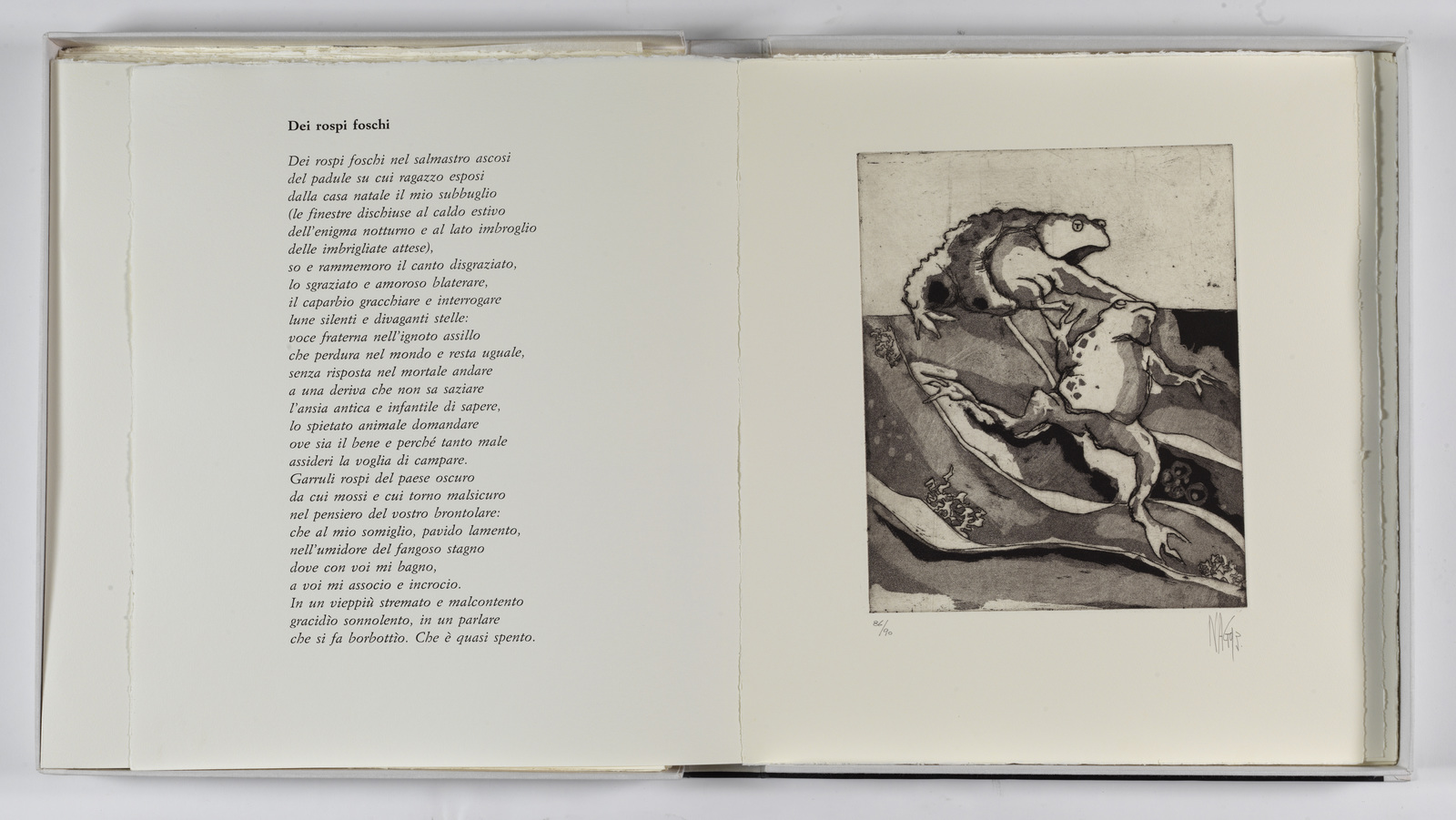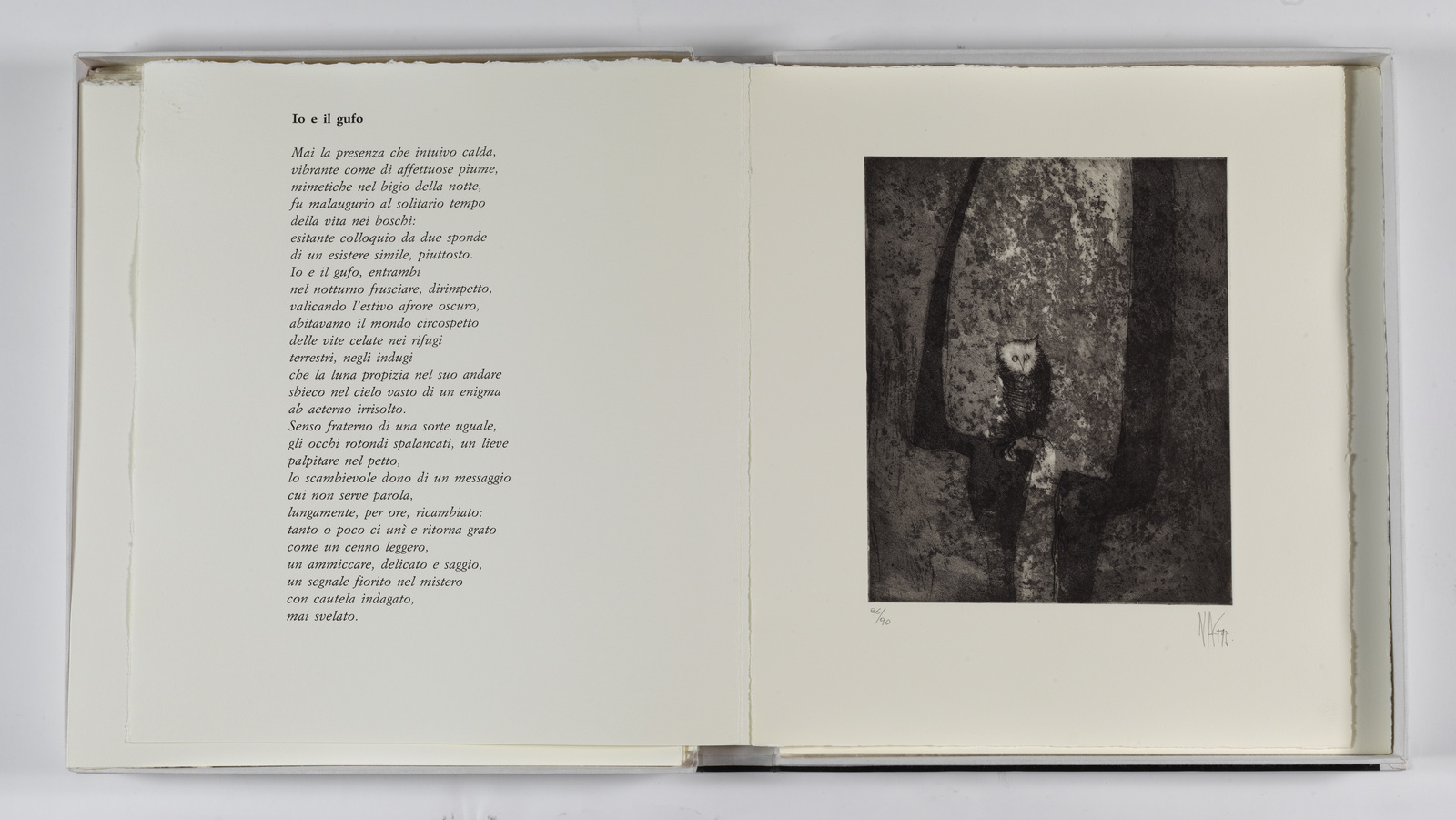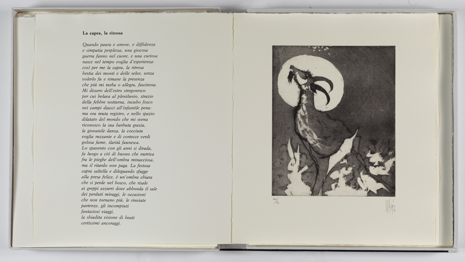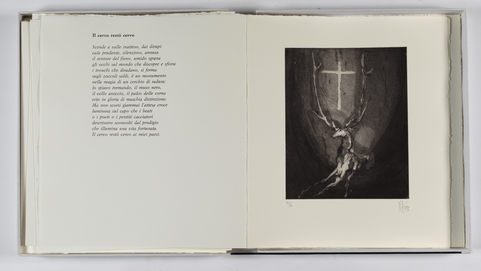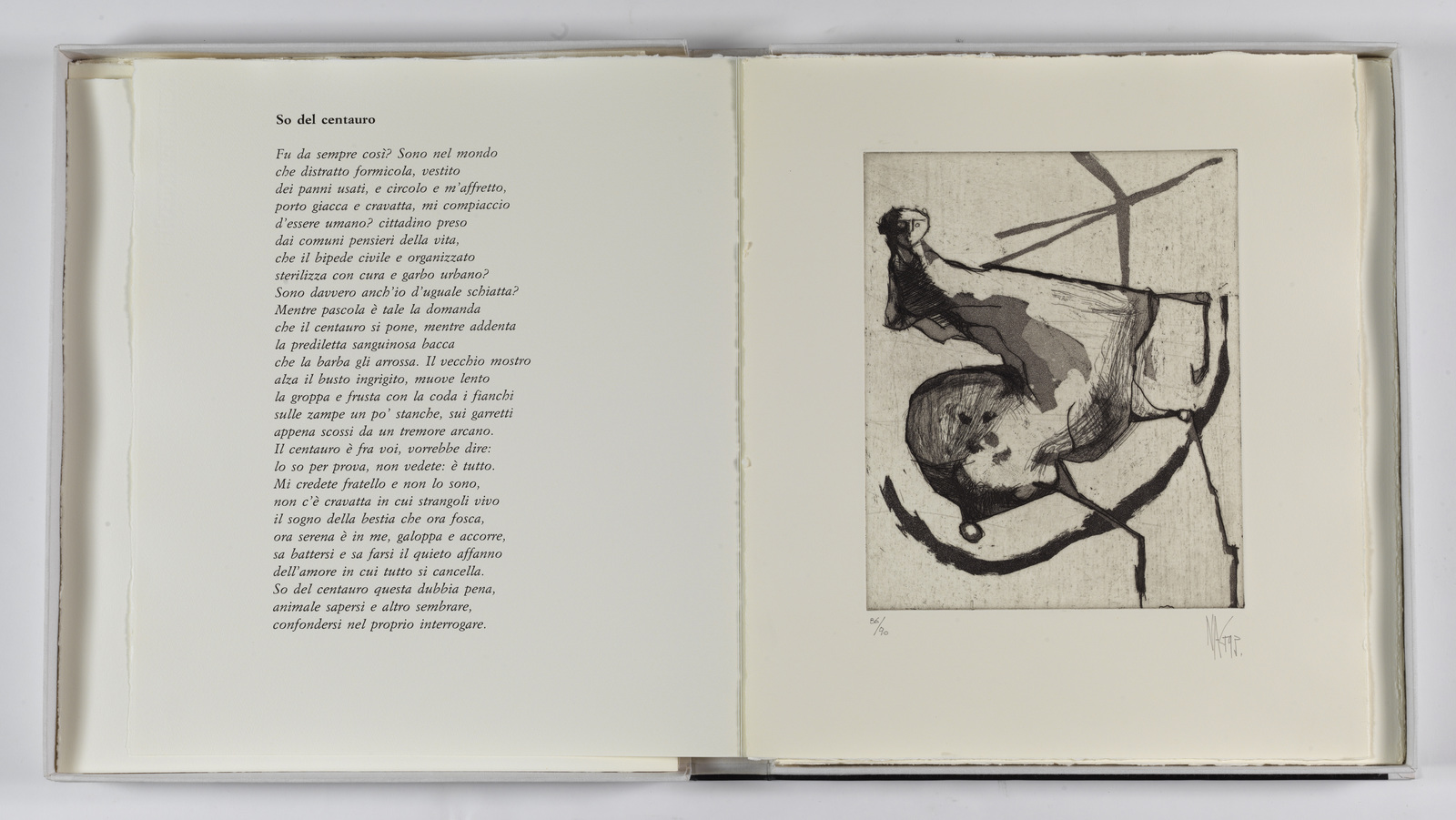 ARNOLDI NAG (n. 1928) Cartella composta da n.20 fogli. Zoo d'Amore. 1993. Acquaforte e acquatinta. Cm 40,00 x 45,00. 86/90. Tiratura e firma a matita in basso. Dimensione lastra: 29x23 cm. Stampatore: Berardinelli, Verona. Editore: Ghelfi, Verona. Carta Hahnemuhle. Presente confezione originale.