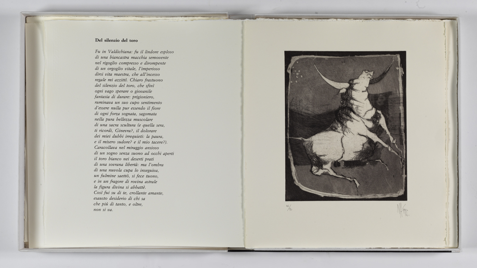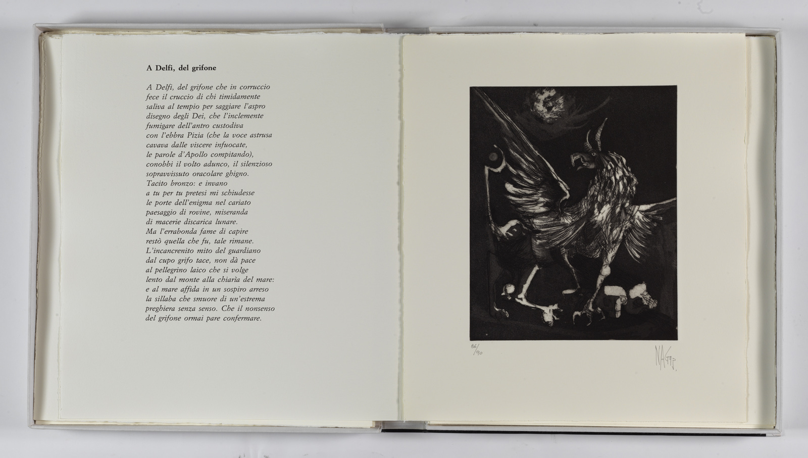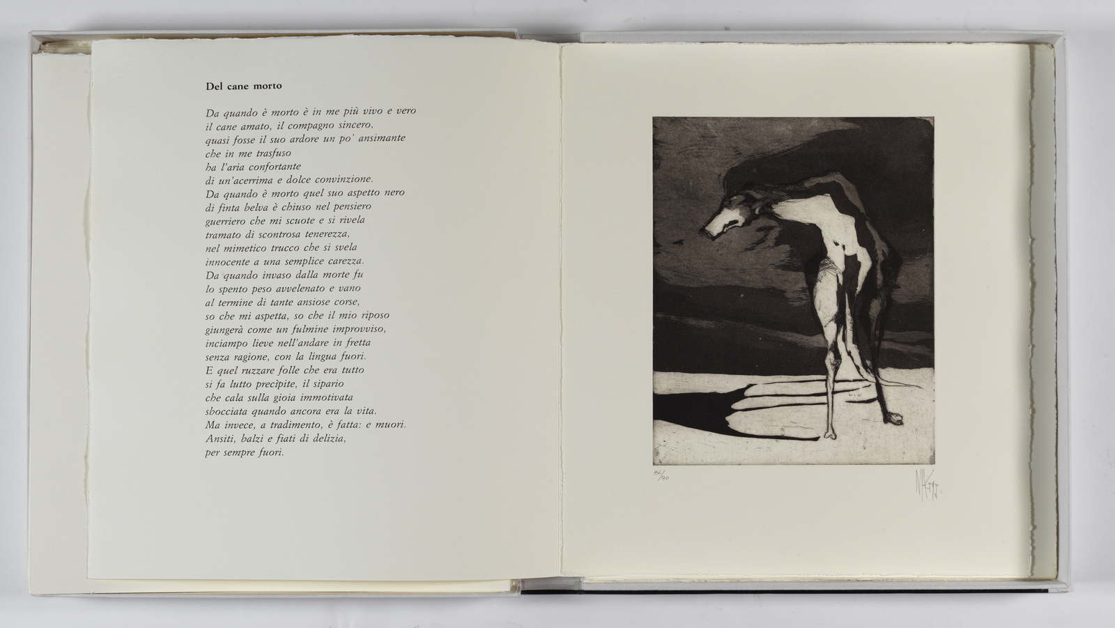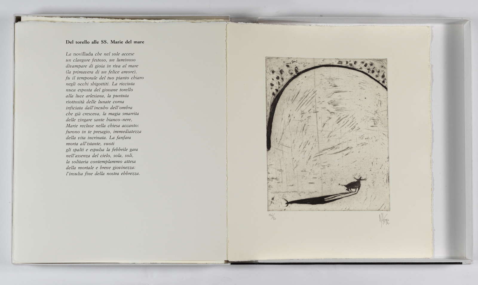 ARNOLDI NAG (n. 1928) Cartella composta da n.20 fogli. Zoo d'Amore. 1993. Acquaforte e acquatinta. Cm 40,00 x 45,00. 86/90. Tiratura e firma a matita in basso. Dimensione lastra: 29x23 cm. Stampatore: Berardinelli, Verona. Editore: Ghelfi, Verona. Carta Hahnemuhle. Presente confezione originale.
