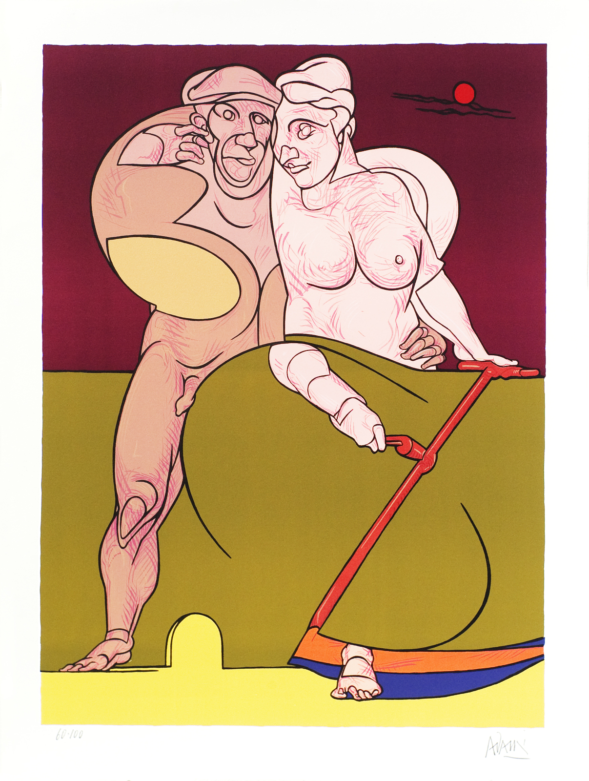 ADAMI VALERIO (n. 1935) Senza titolo. Litografia. Cm 65,00 x 86,50. 60/100. Tiratura e firma a matita in basso.