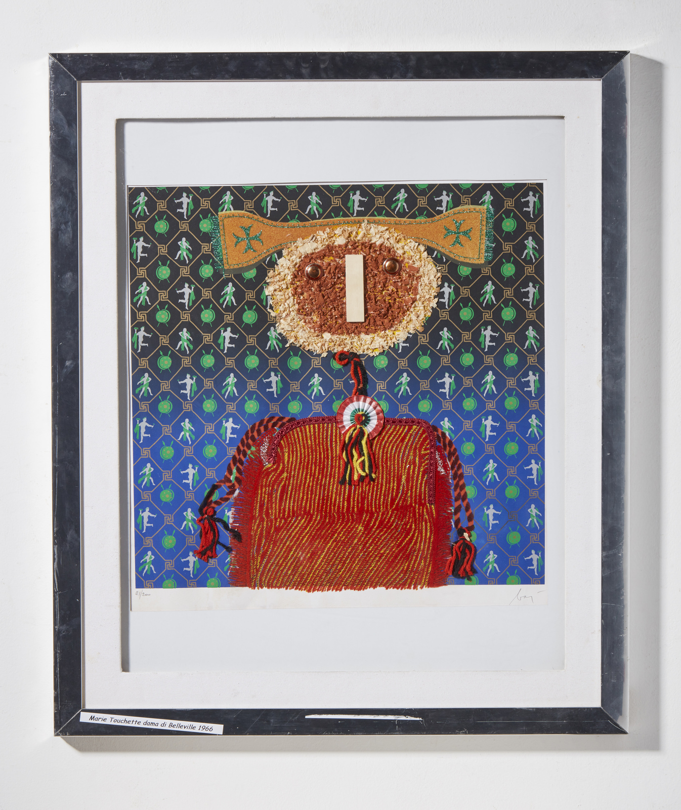 BAJ ENRICO (1924 - 2003) Marie Touchet, Dame de Belleville. 1979. Serigrafia e collage. Cm 64,00 x 64,50. 21/200 .Tiratura e firma in basso a matita. Dimensione lastra: 50x50 cm.Edizione totale: 200 esemplari numerati da 1 a 200, 25 esemplari numerati da H.C. I a H.C. XXV. Pubblicazione:Baj. Catalogo generale delle stampe originali, Electa, Milano, 1986, n.510 pag.141. Ringraziamo Roberta Cerini Baj per aver contribuito alla stesura della scheda. Cornice presente