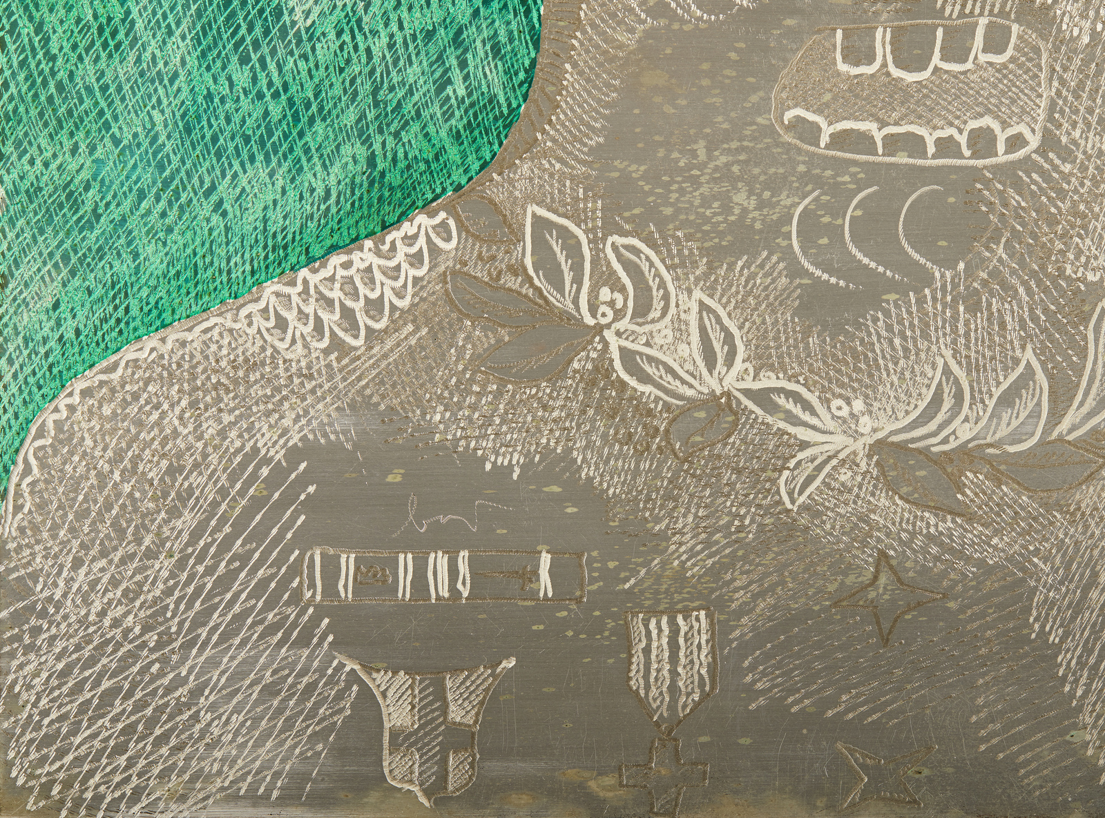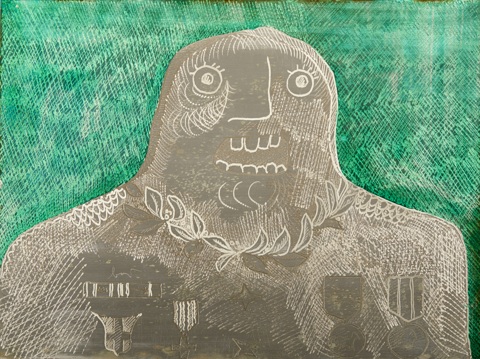 BAJ ENRICO (1924 - 2003) Generale decorato. 1973. incisione su lastra d'argento. Cm 40,00 x 30,00. 2/100. Tiratura e firma al retro. Al retro cartiglio descrittivo della Galleria Alla Chiave, Venezia. Edizione totale: 100 esemplari numerati da 1 a 100, 10 esemplari numerati da I a X, 2 prove d’artista. Editore: Orfino, Mestre. Pubblicazione: Multipli di Baj, Comune di Milano, Ripartizione Cultura, dicembre 1976, n. 61. Ringraziamo Roberta Cerini Baj per aver confermato l'autenticità dell'opera.