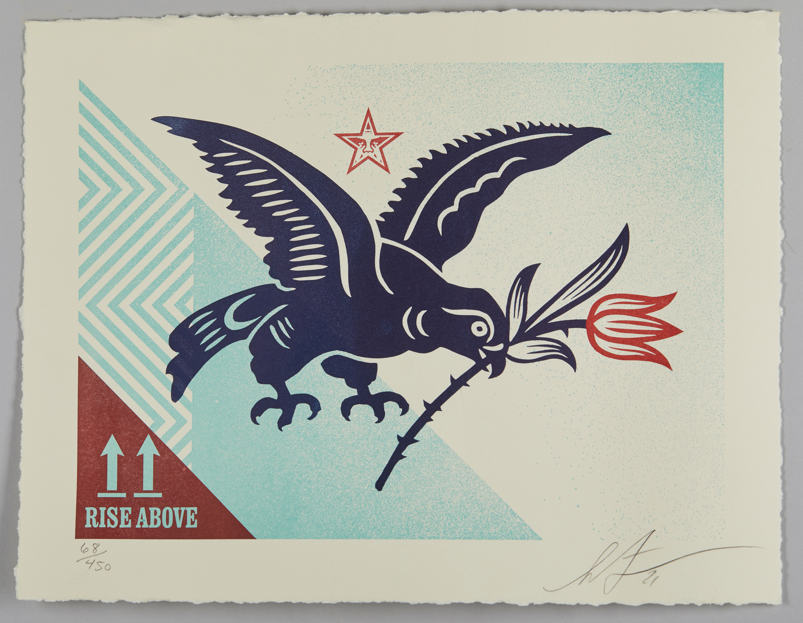 OBEY (n. 1970) Rise above bird. . 2021. Serigrafia. Cm 33,00 x 25,50. 68/450. Tiratura, firma e anno in basso a matita.