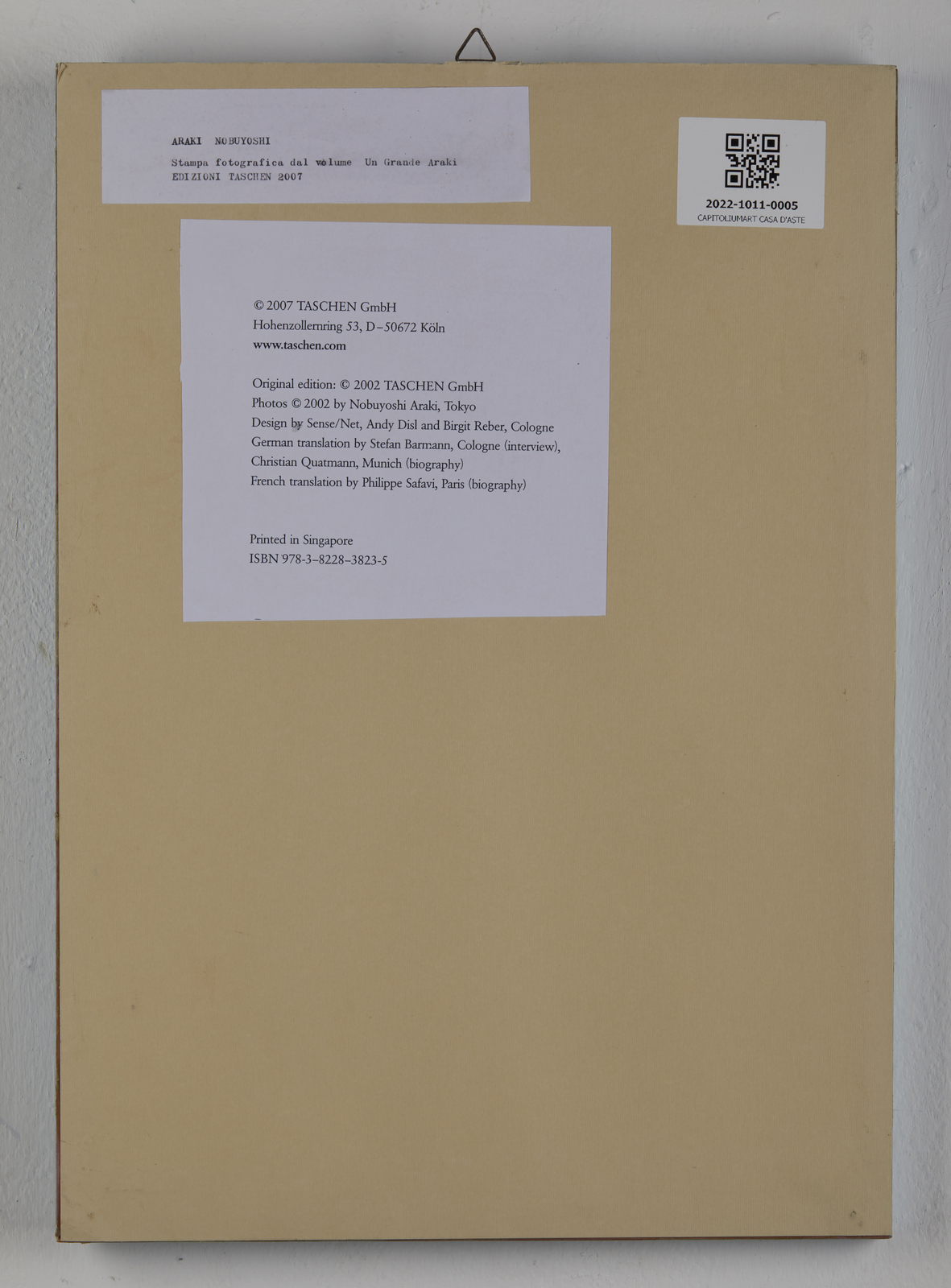 ARAKI NOBUYOSHI (n. 1940) Senza titolo. 2007. Stampa a colori. Cm 19,00 x 29,00. Lotto proveniente dal volume Un Grande Araki, Ed. Taschen, 2007 con tiratura limitata in 2500 copie. Il libro racchiude più di 1000 immagini. Cornice presente