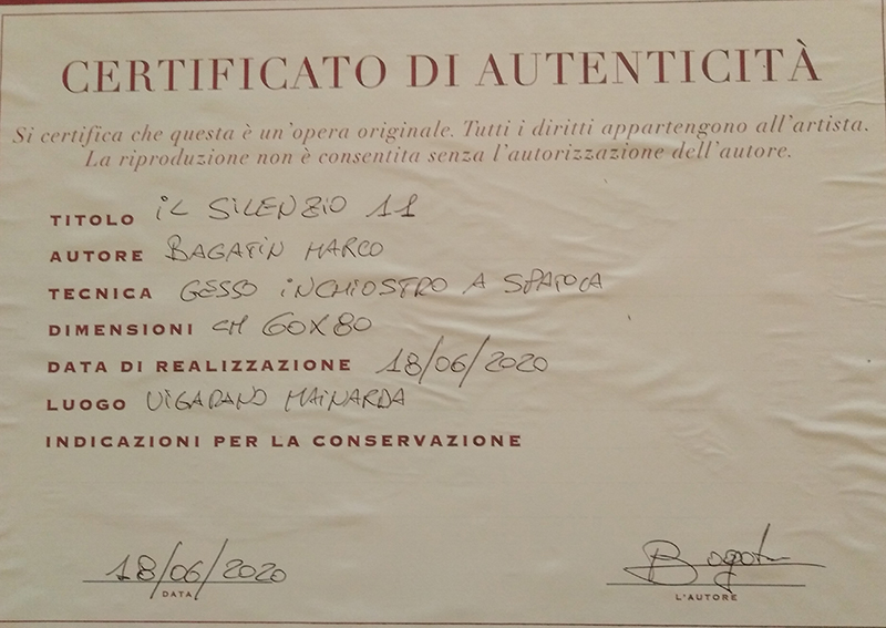 Certificazione: Certificato di autenticità rilasciato dall'Artista