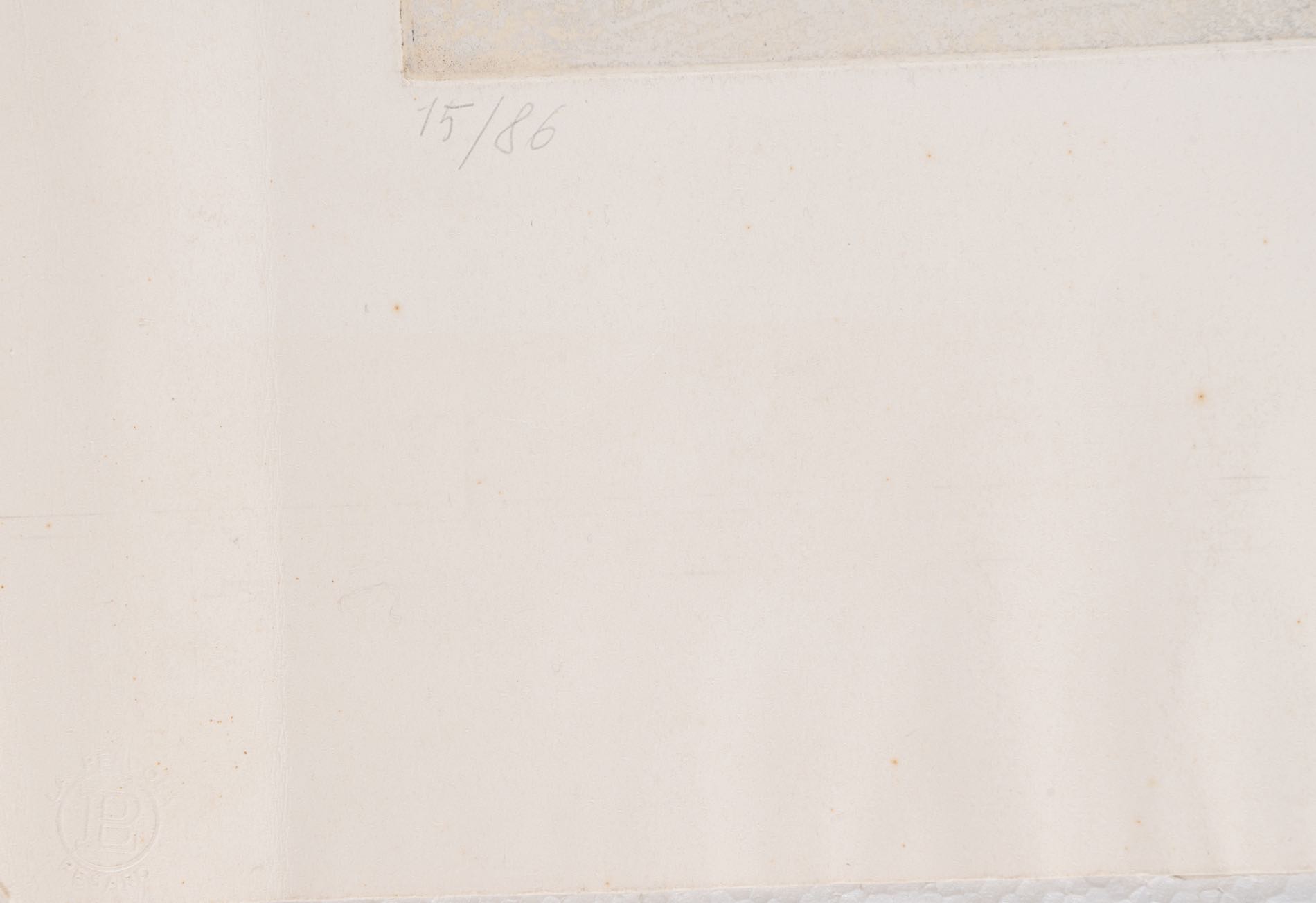 Acquaforte a due colori su carta, firmata e datata in basso a destra, numero di tiratura in basso a sinistra 15/86, Lastra H cm 47x35 – Foglio H cm 70x50