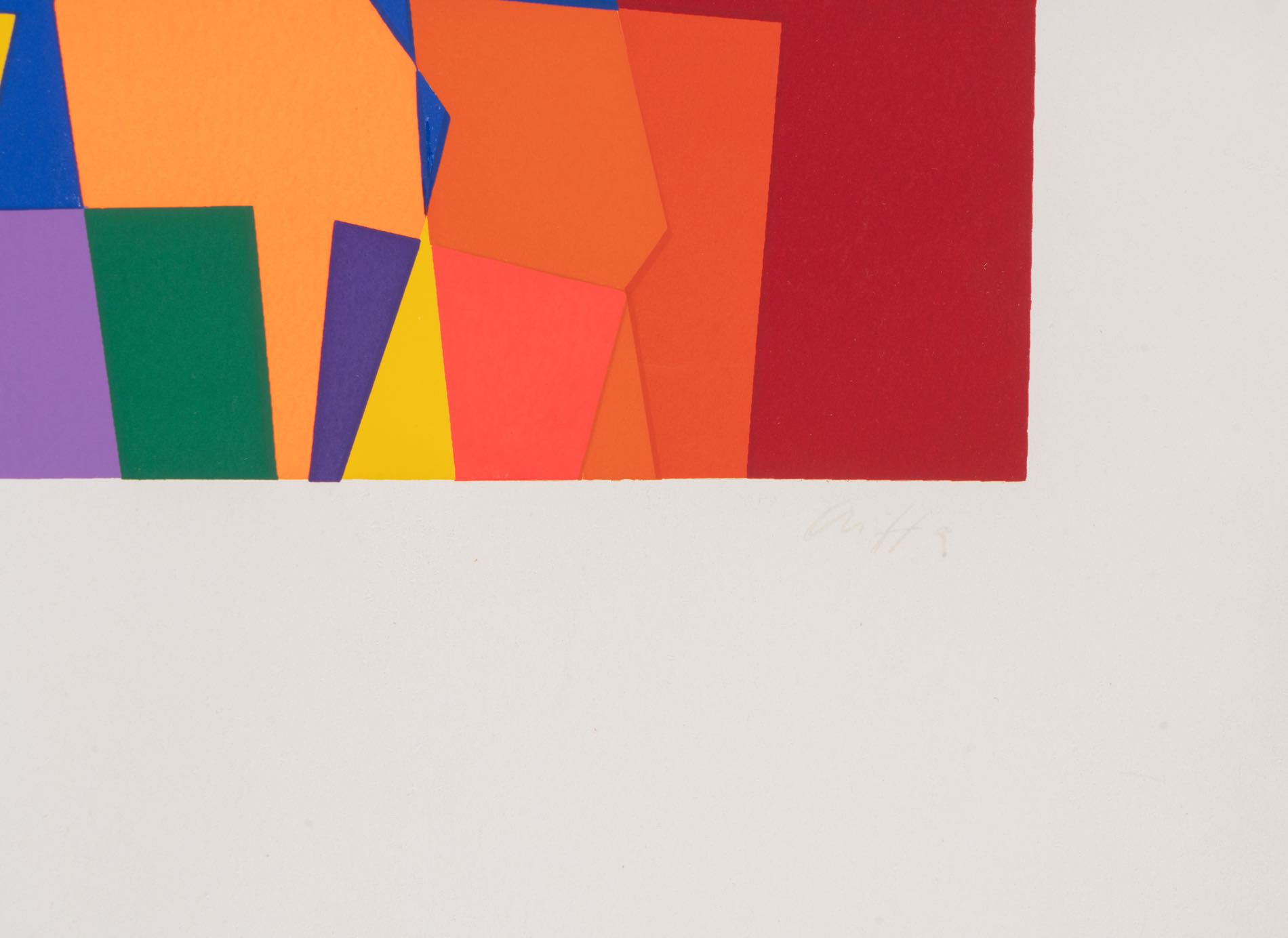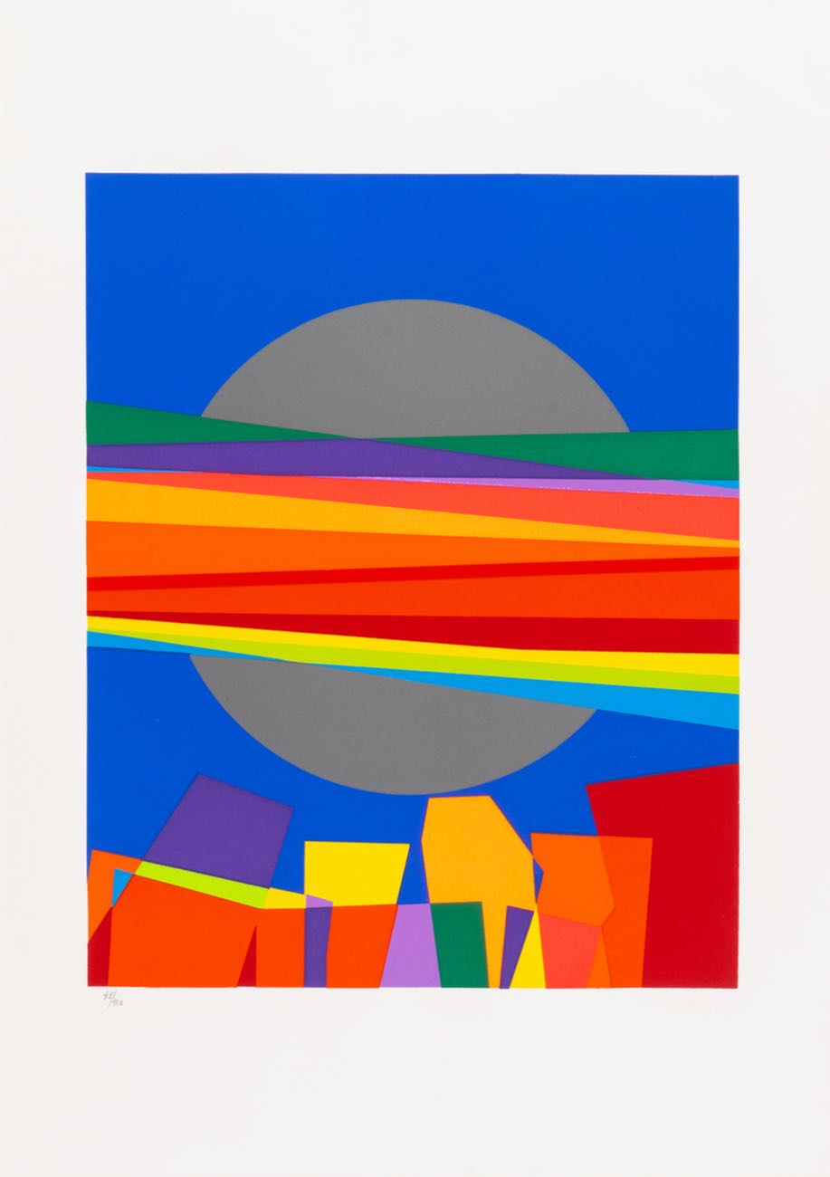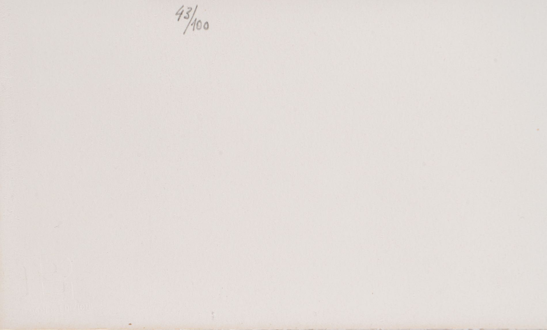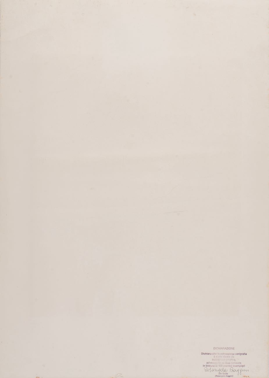 Litografia a colori su carta, firmata in basso destra, numero di tiratura in basso a sinistra 43/100, reca al retro iscrizione per dichiarazione di autenticità a firma Rosangela Baggini, Foglio H cm 70x50