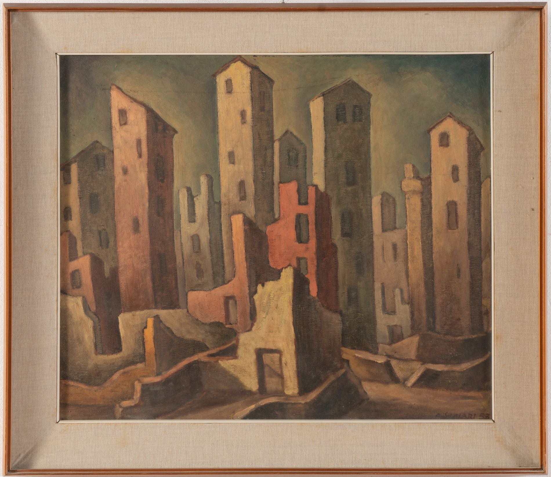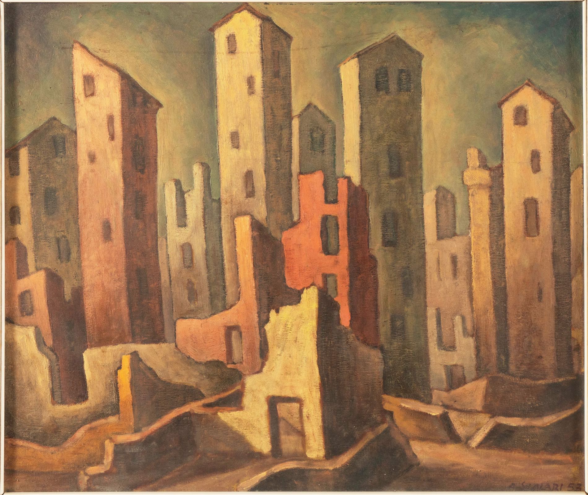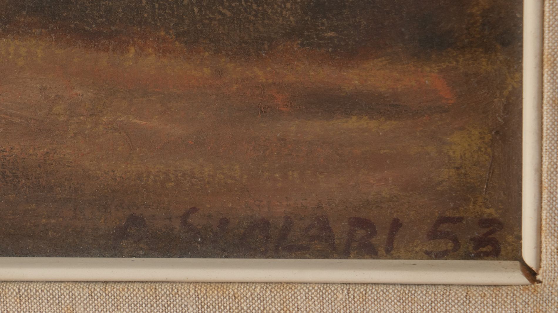 Olio su compensato, firmato e datato in basso a destra “A. Scolari 53”, reca al retro etichetta con titolo e firma, H cm 57x67
