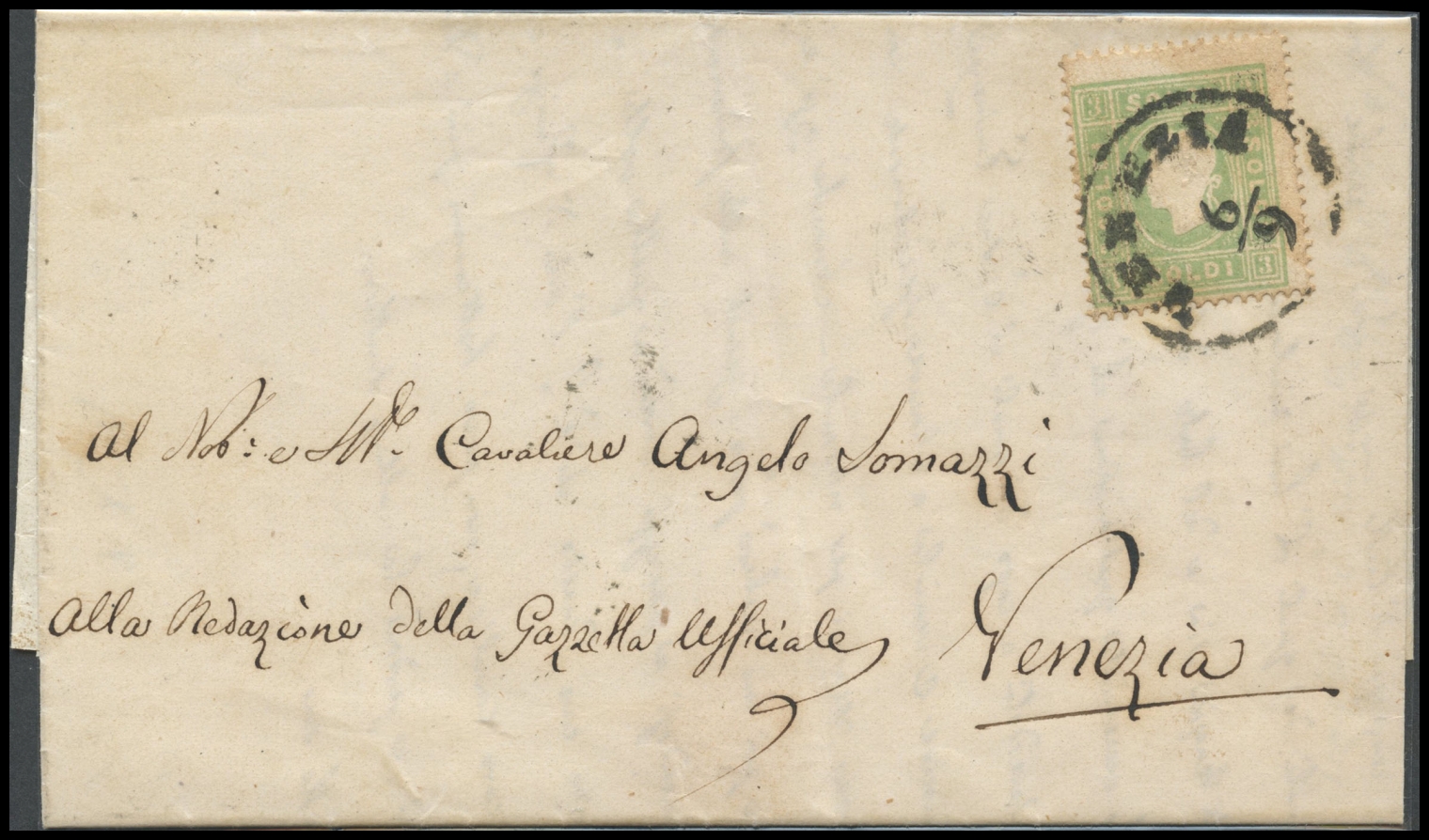 Lombardy - Venetia, 06.09.1863, letter from Venice to the city posted with a 3s. N.35 Green and Yellow. (A)