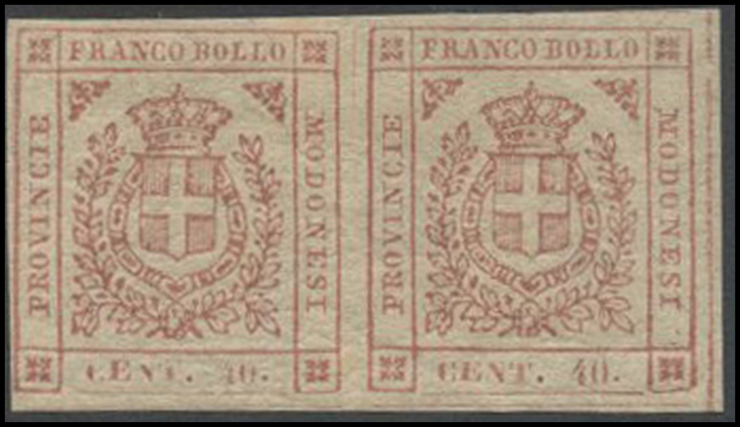 Modena, 1859, 40c.Carmine Pink N.17, new pair, gummed, MH. (A+)