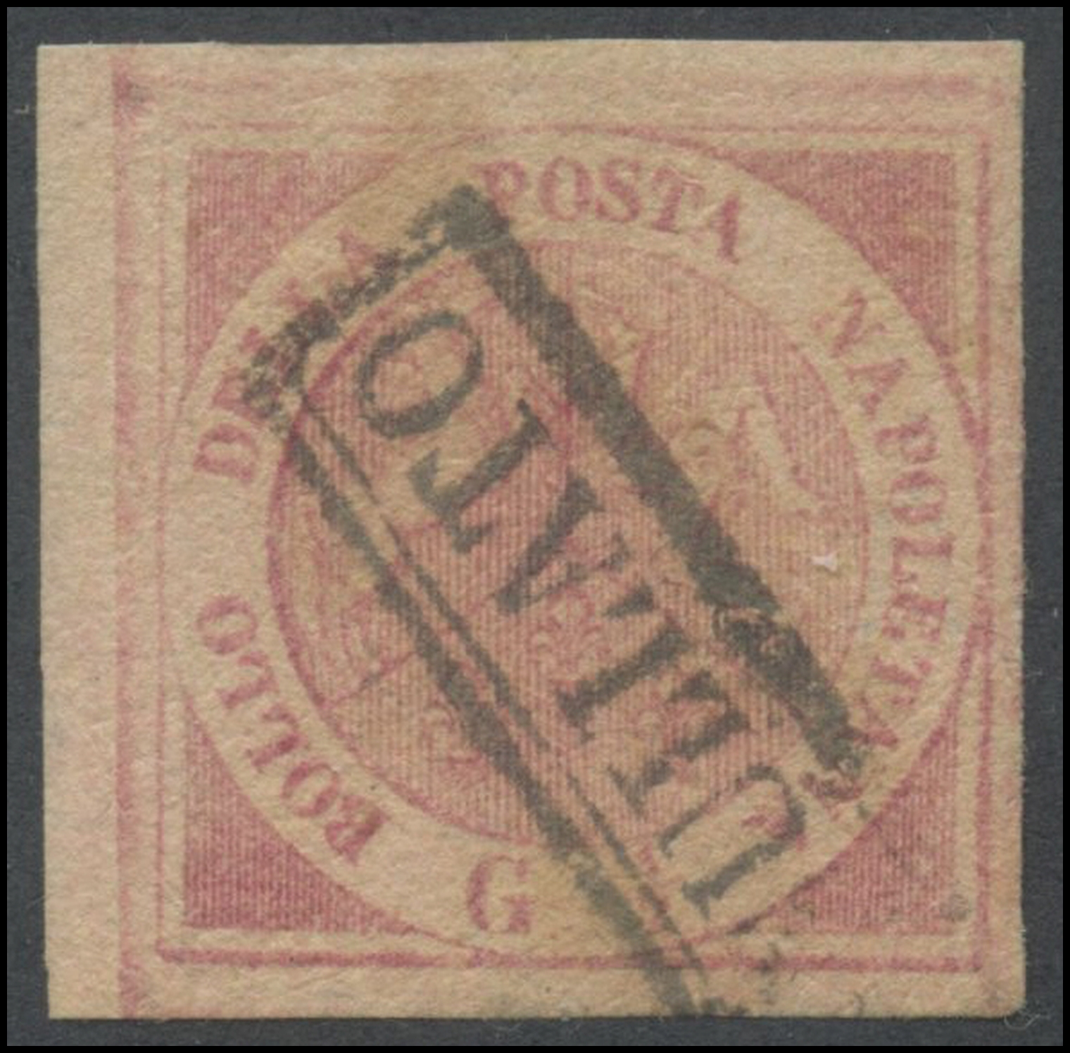 Naples, 1852, 1/2 gr. Pink II plate N.2c with left sheet margin, used. (A+)