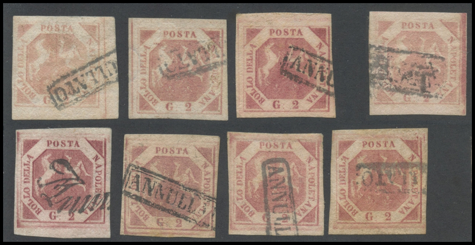 Naples, Lot of eight 2gr. in different nuances of the three plates, all high...