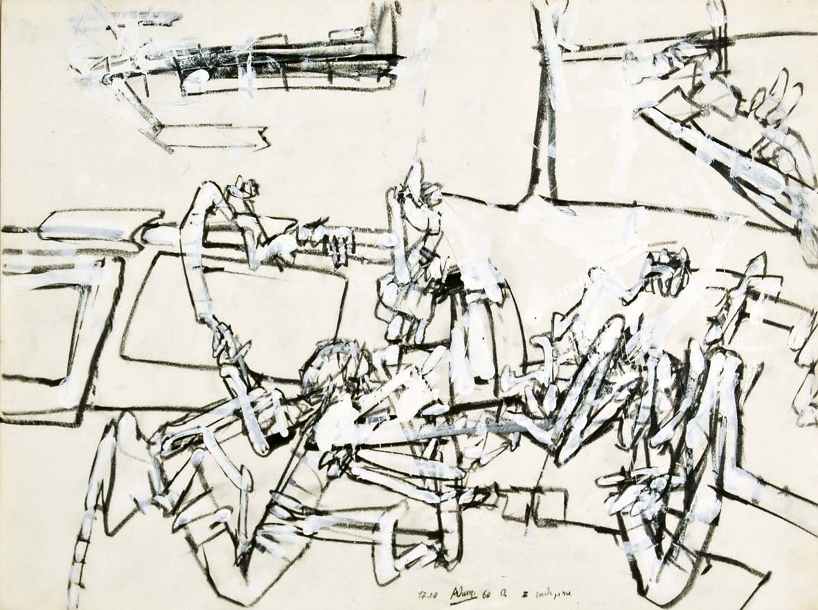 ADAMI VALERIO Bologna 1935 Indagine 1960 tecnica mista su carta 35,8x47,8 firma data e titolo in basso al centro Autentica dell'Autore su foto Provenienza: Studio Marconi Milano