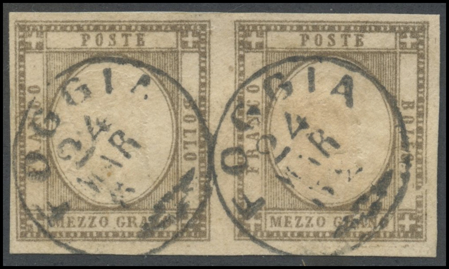 Neapolitan Provinces, 1861, 1/2gr. Greyish Tawny N.18c. Used pair. (Pos.73/74). (A)