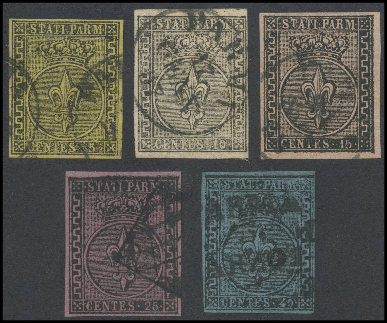 Parma, 1852, N.1/5 used, complete high-quality series. (A+)