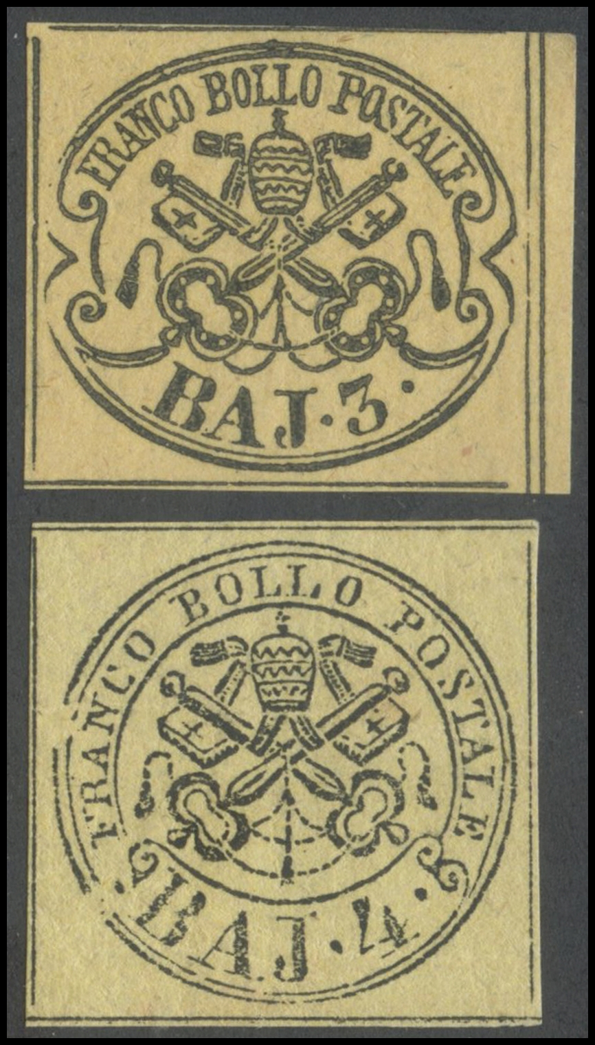 Papal States, 1852, N.4A and 5Ab new. (A+) (A. Diena) MNH.