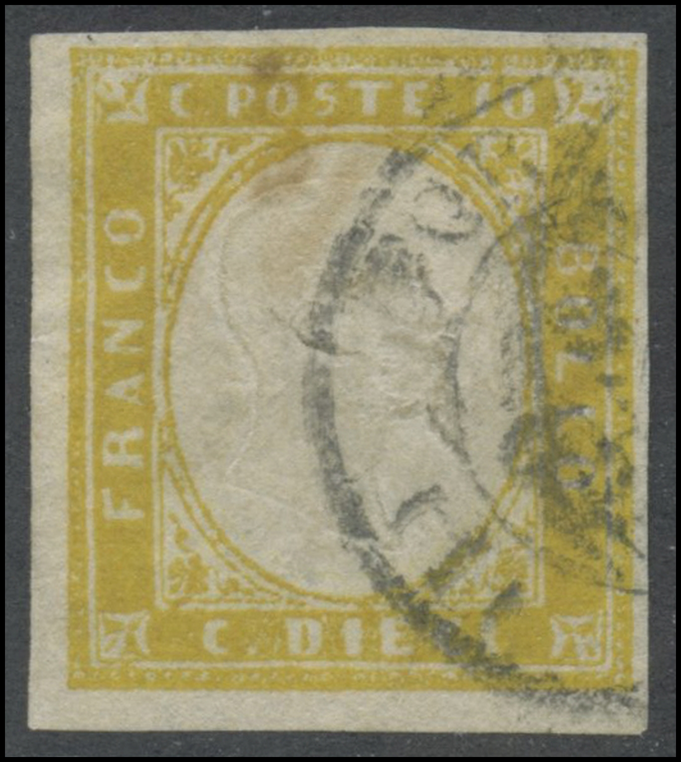 Sardinia, 1862, 10c. Olive Yellow N.14Dc. (A) (Cert. Cardillo)
