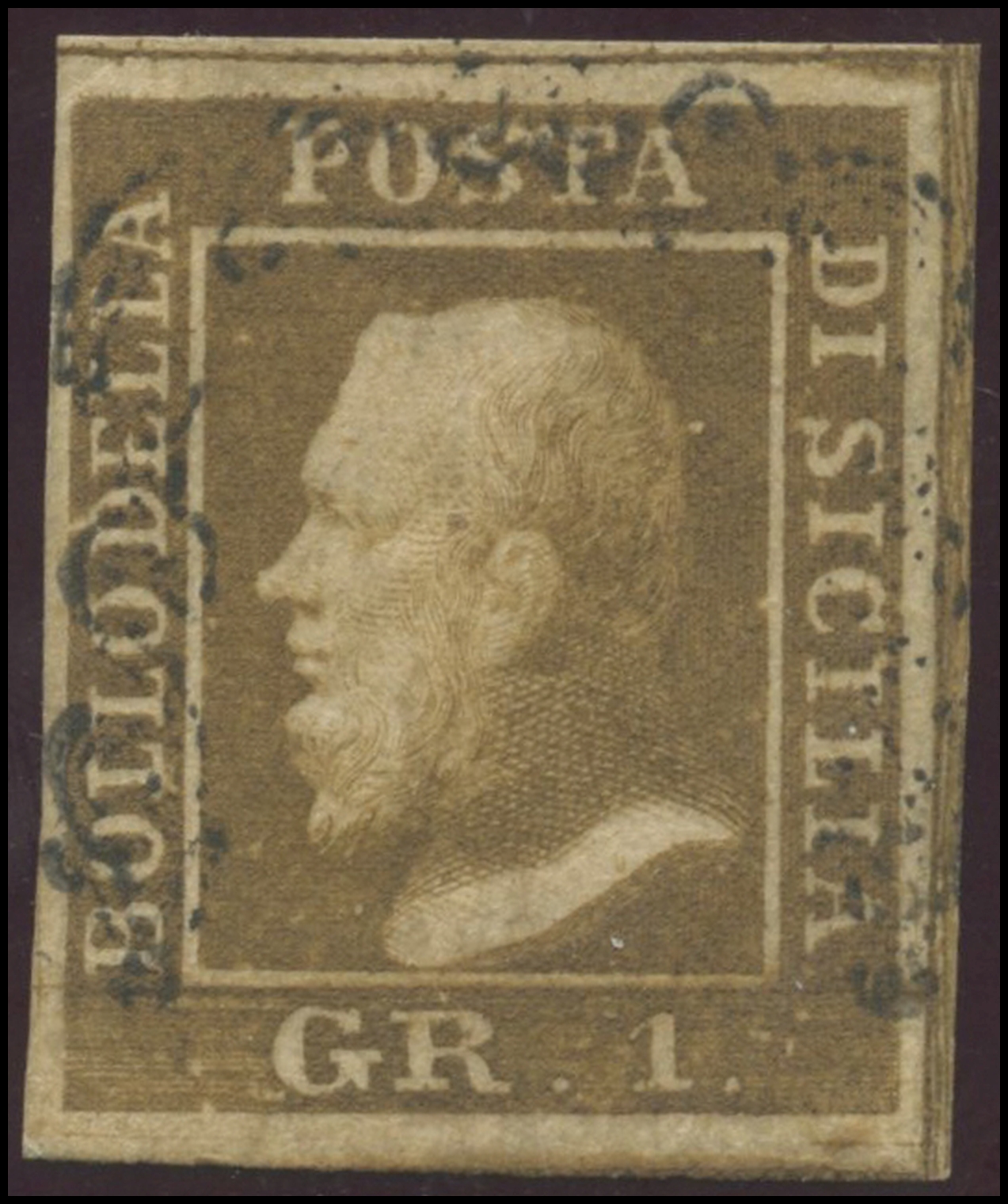 Lot 151 | Sicily, 1858, 1gr. Olive Brown first plate II° state N.3d. (A+) (Cert. En.Diena)