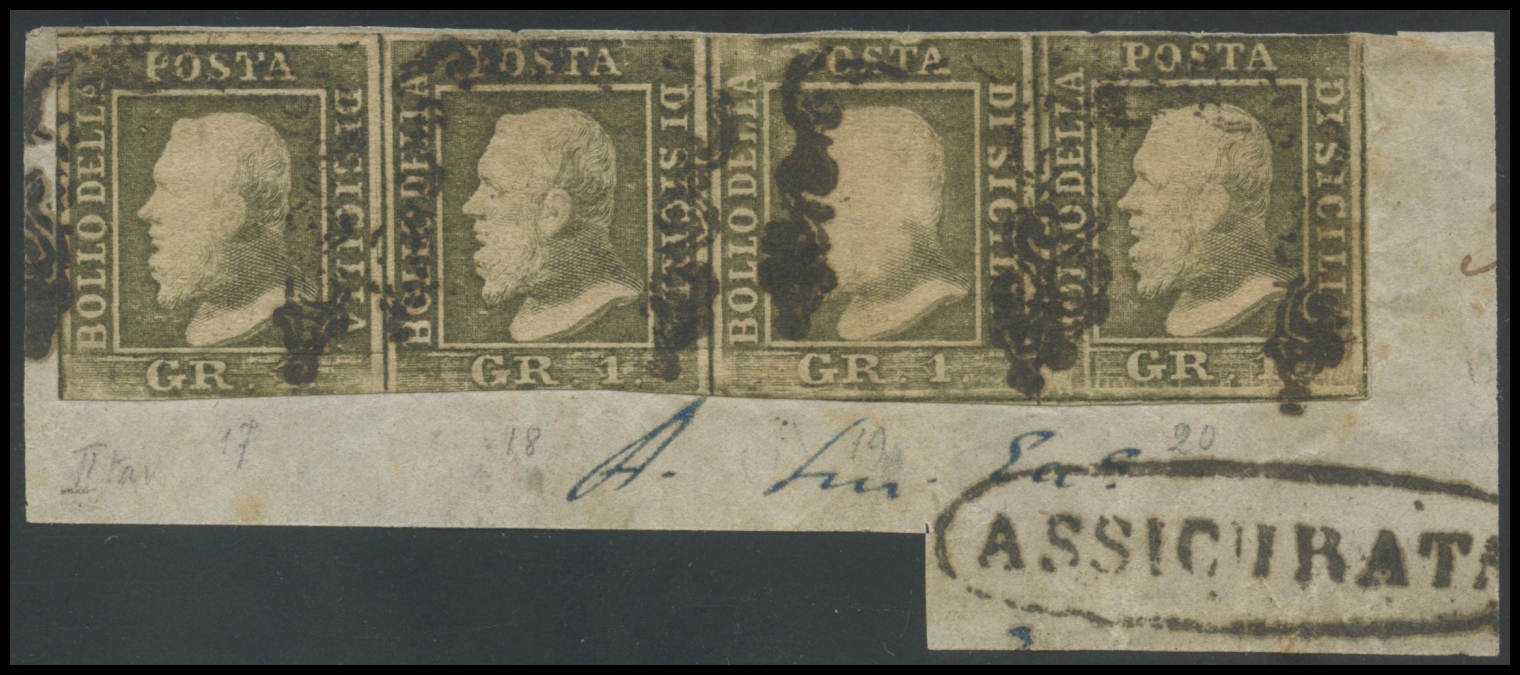 Lot 153 | Sicily, 1859, 1gr. Greyish olive Napoli paper N.4e in stripes of four...