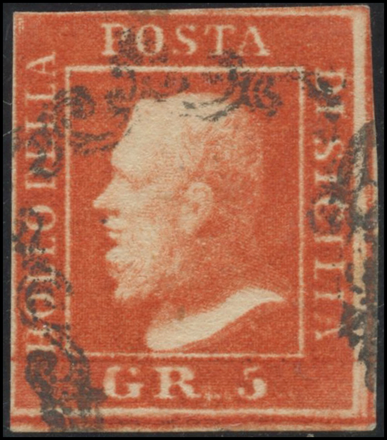 Lot 165 | Sicily, 1859, 5gr Bright vermillion N.11a, used (A) (Cert. F.Taormina)