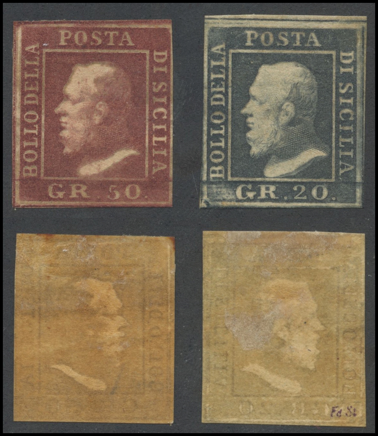 Sicily, 1859, 20gr e 50gr. Both oily prints. New and gummed. (MH)