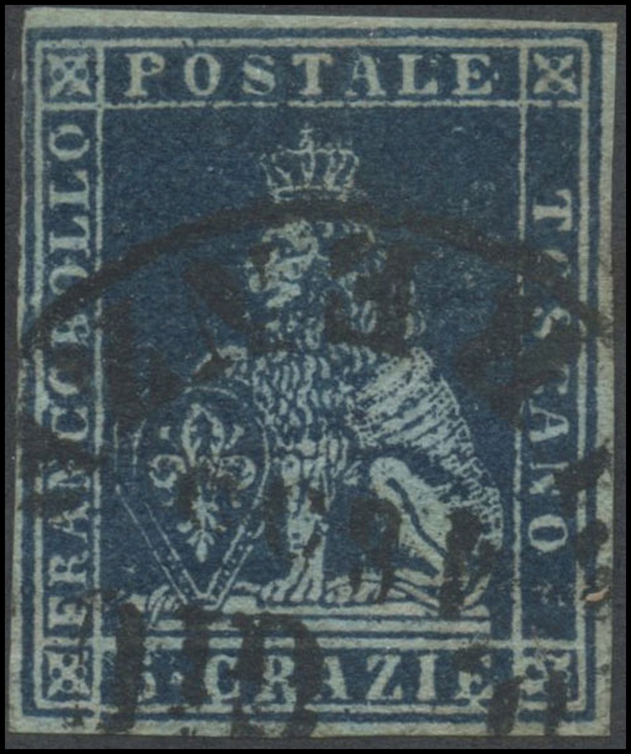 Tuscany, 1851, 6cr. N. 7a Indigo on Light Blue, used. (A+) (A. Diena)