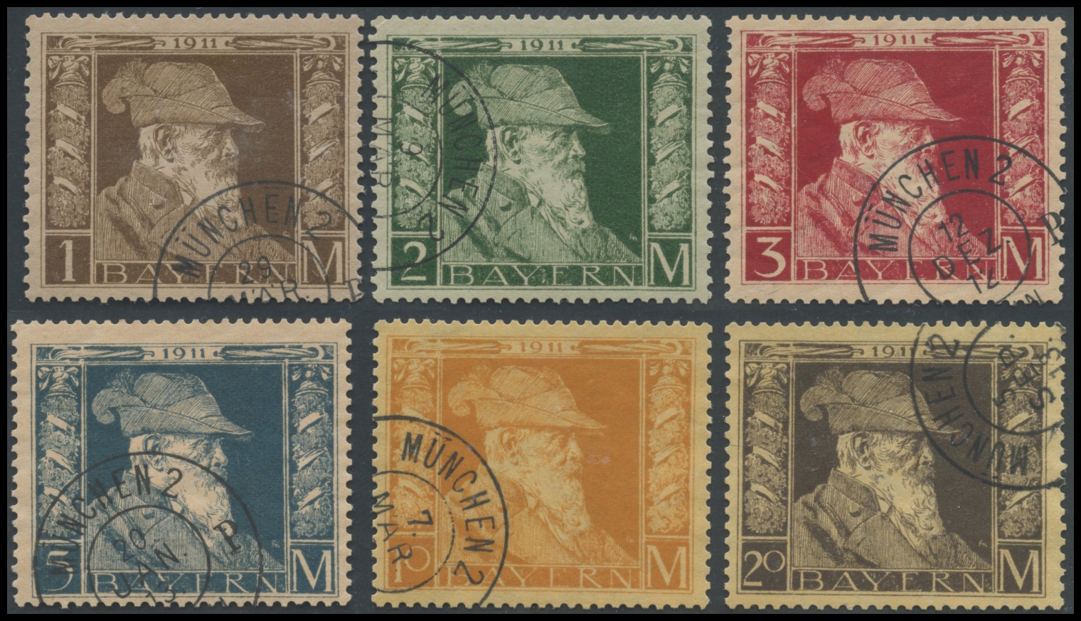Previous Lot 245 Next Bertolami Fine Art - Piazza Lovatelli 1, 00186 Roma FILATELIA ASTA WEB 239: FILATELIA Thursday 10 November 2022 hours 14:00 (UTC +01:00) Germany, 1911, Bavaria N.86/91 II type used. Germany, 1911, Bavaria N.86/91 II type used.