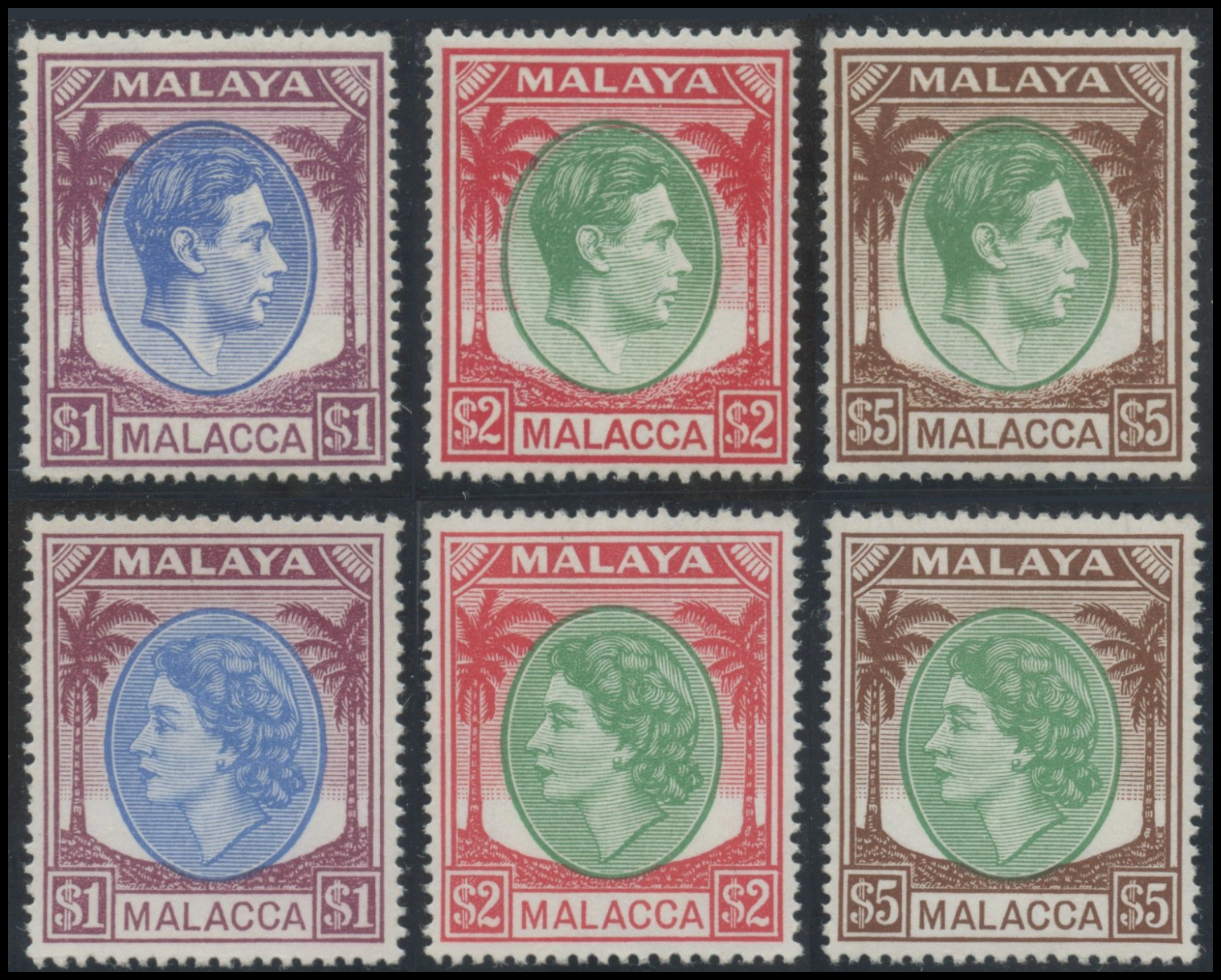 British Commonwealth, Malaysia-Malacca, 1949 N.3/17 e 23/38. Two high-quality series, MNH.
