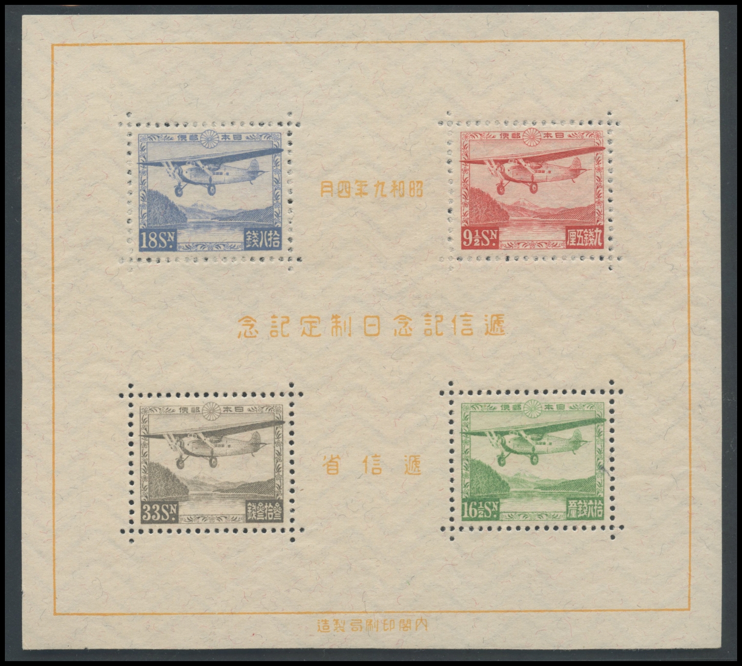 Japan, 1934, Sheetlet N.1 new with an invisible hinge trace. MH.