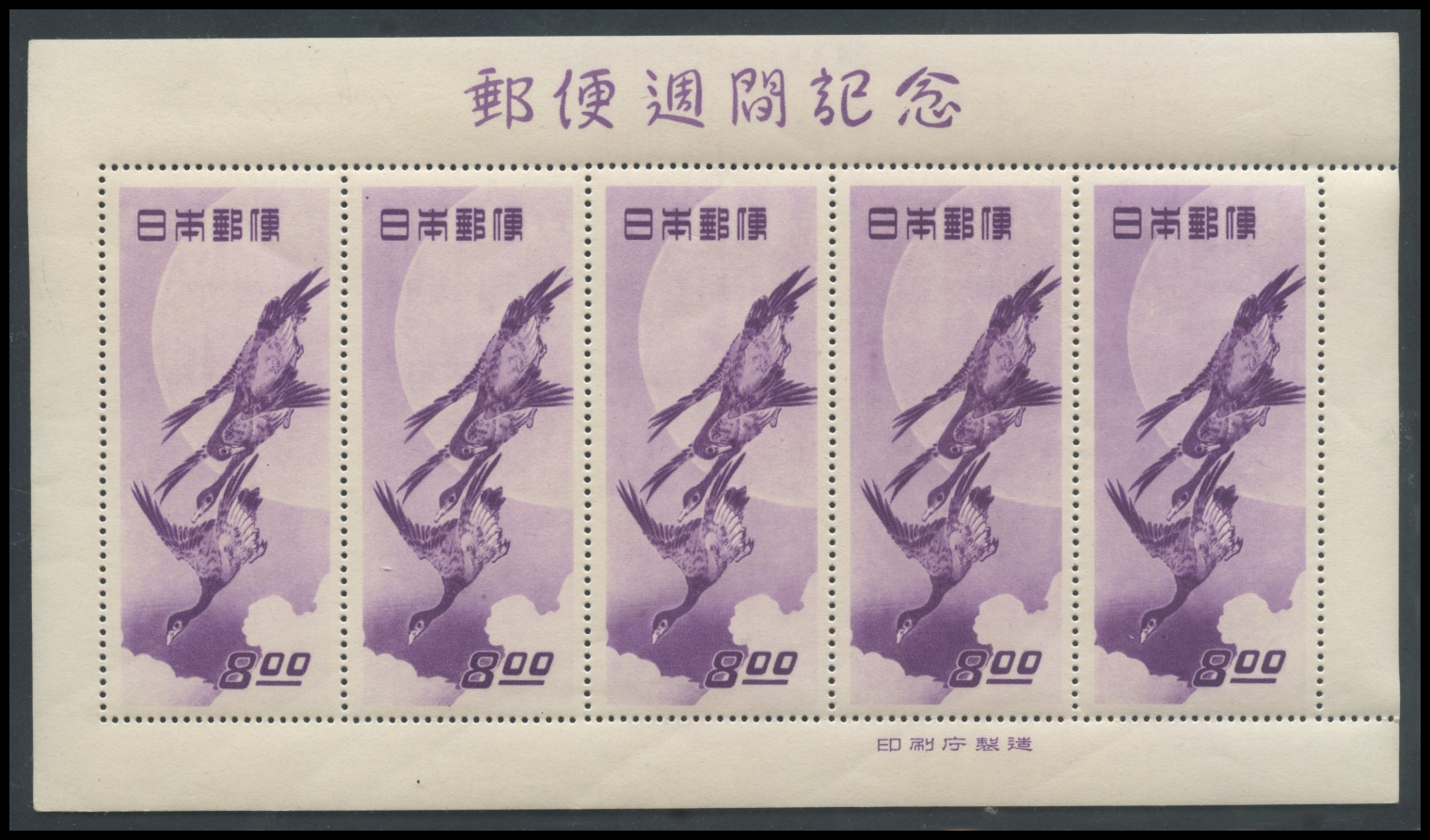 Japan, 1949, Minisheet N.437 of five new specimens. High-quality. MNH.