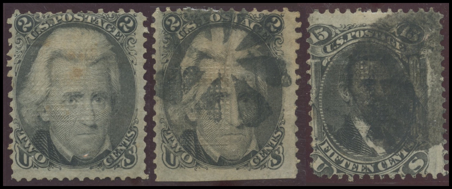 Previous Lot 490 Next Bertolami Fine Art - Piazza Lovatelli 1, 00186 Roma FILATELIA ASTA WEB 239: FILATELIA Thursday 10 November 2022 hours 14:00 (UTC +01:00) U.S.A., 1867, N.29A and 31A with various grid types.U. U.S.A., 1867, N.29A and 31A with various grid types.U.