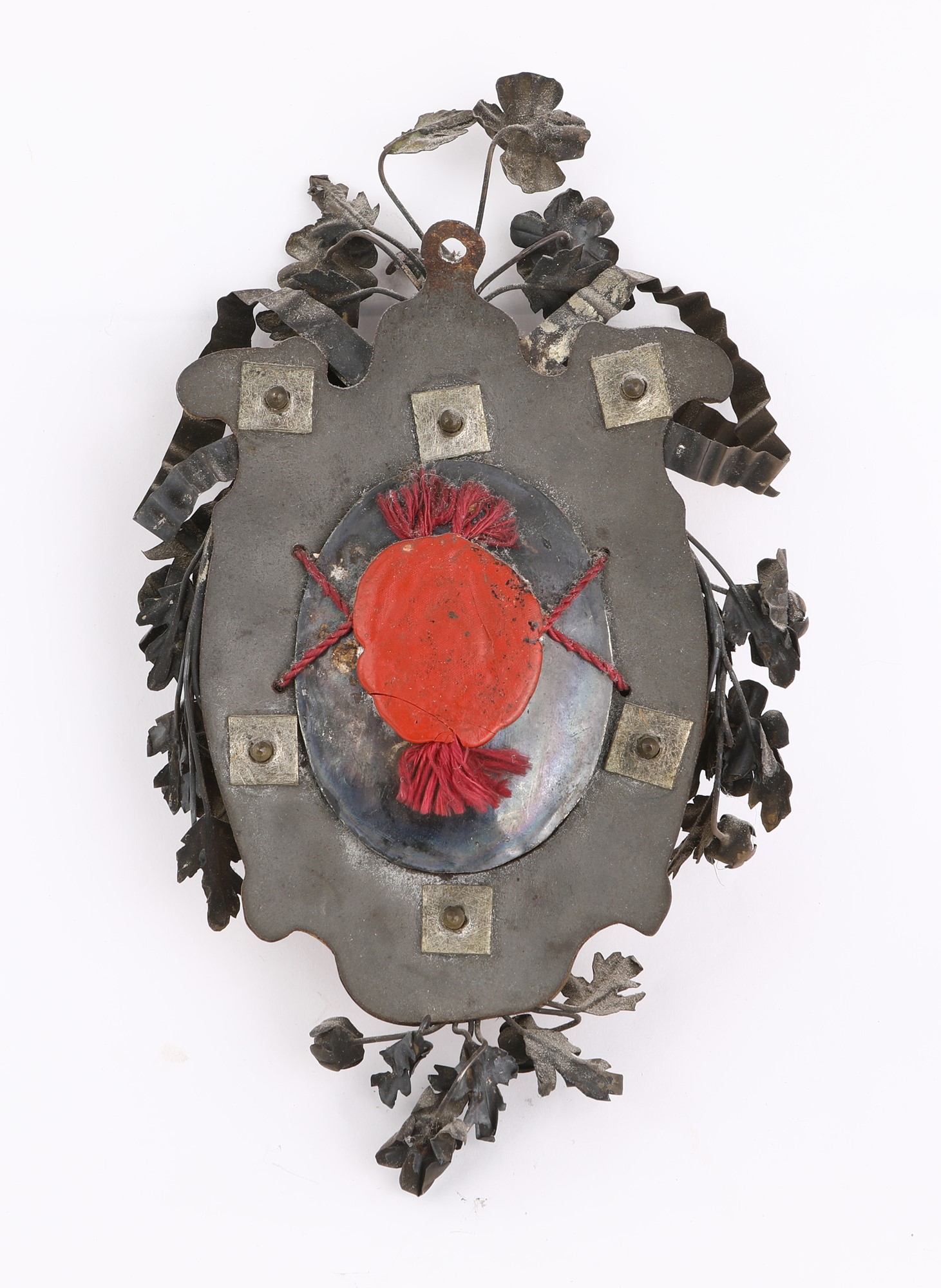Cornice ovale in bronzo dorato con tralci in tolla, XVIII secolo