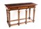 piano rettangolare scandito da tre riquadri, corrispondenti ai tre cassetti allineati compresi nella fascia, separati da formelle bugnate; gambe rastremate poggianti su traverse; bassi piedi a trottola