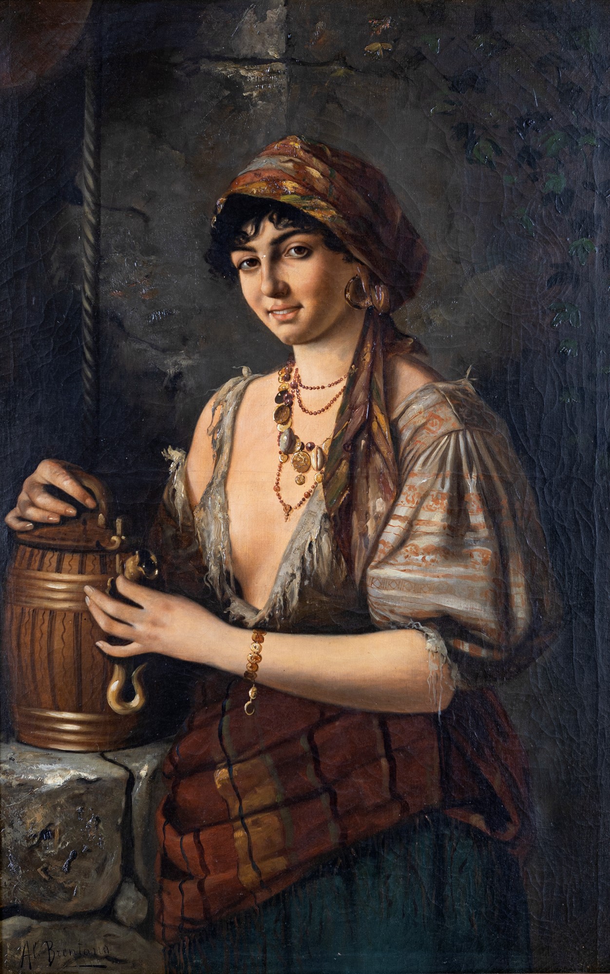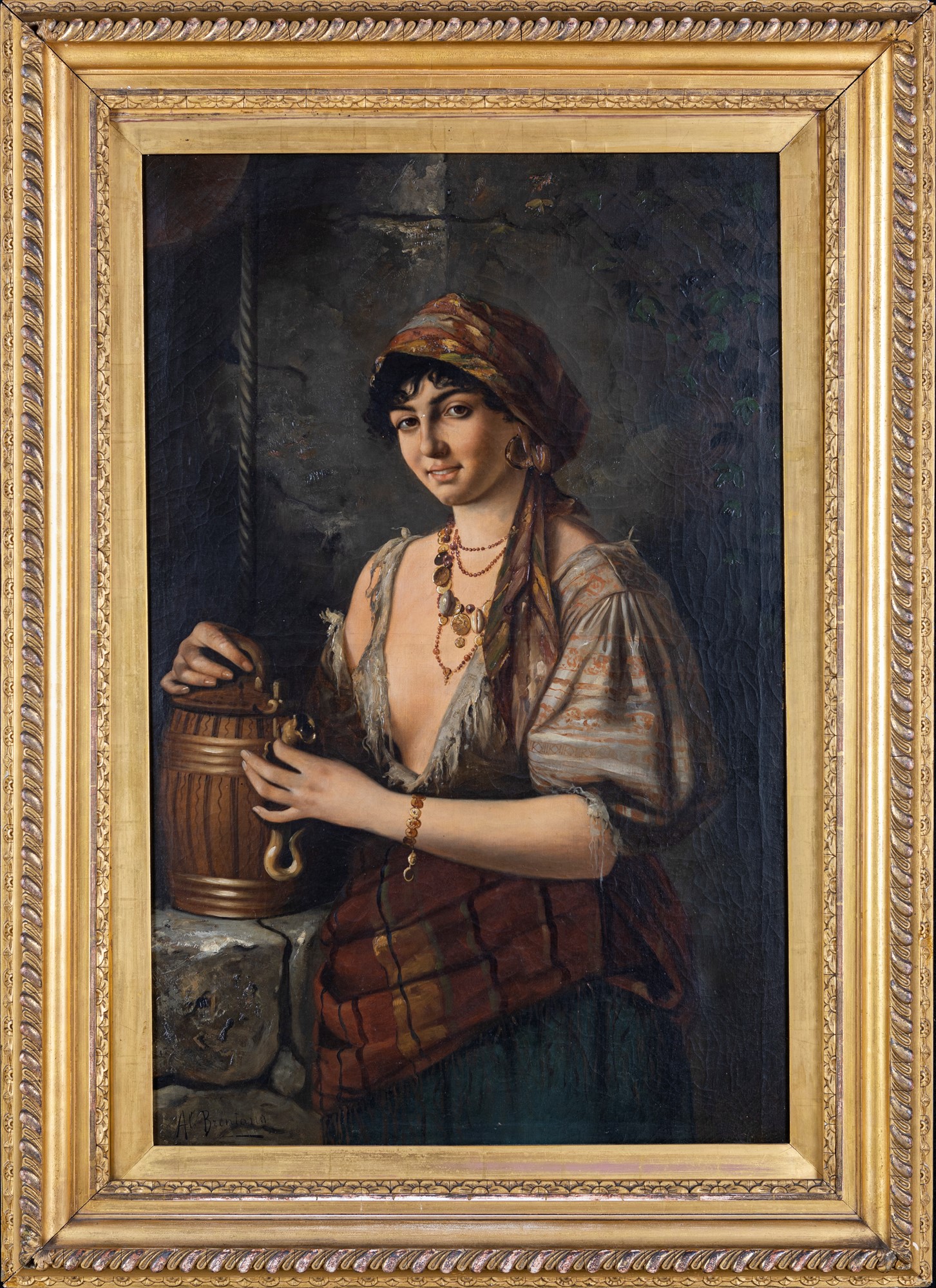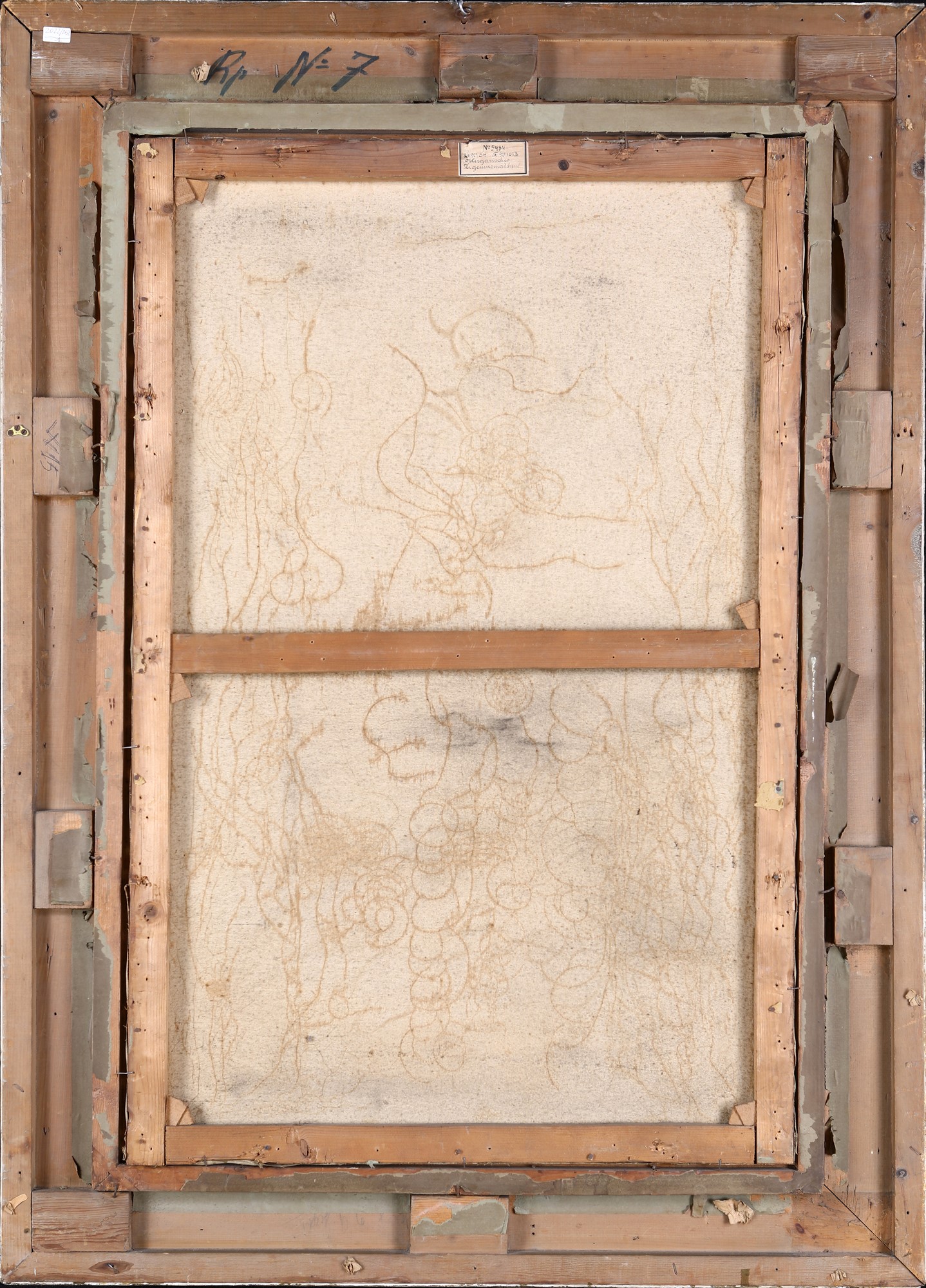 L'opera, per la cui descrizione si rimanda al lotto successivo, è arricchita da una cornice Impero in legno e pastiglia dorati e reca la firma in basso a destra: "A. Brentano".