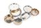 due piattini diversi con stemma degli argentieri Miracoli di Milano e Sandonà di Treviso; tre di forma circolare diversi lungo il profilo. Una ciotolina liscia ed una con orlo dodecagonale