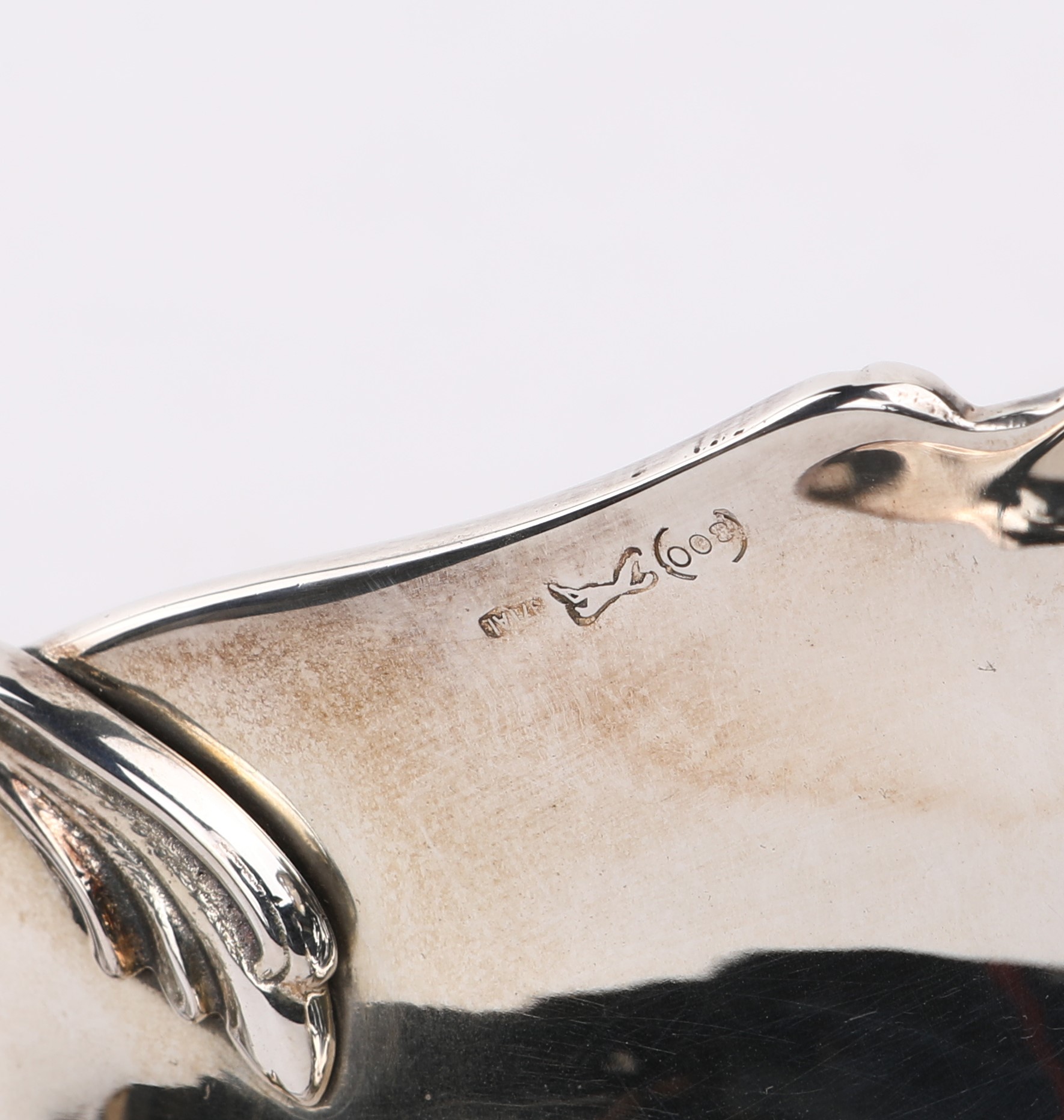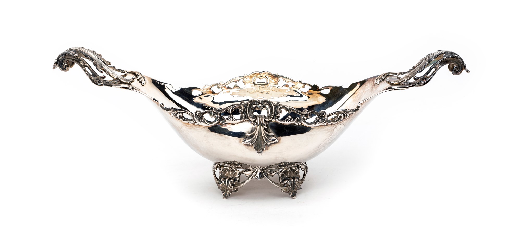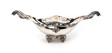 a forma di navicella impreziosita al centro e ai vertici da rilievi vegetali; sostegni in forma di conchiglia