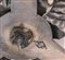 di forma sferica con parte inferiore caratterizzata da lunghe foglie lanceolate sbalzate, su tre gambe a guisa di cariatide riunite da traversa sormontata da una corolla; coperchio a cupolino dominato da un cespo fogliaceo, piedi a sfera