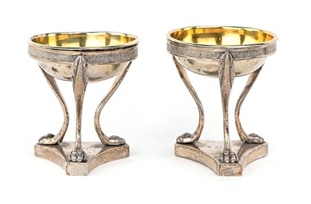 Coppia di saliere a tripode in argento, Toscana, argentiere Codacci