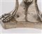 con vaschetta estraibile dorata trattenuta da anello con palmette cesellate; sostegni arcuati terminanti a piede ferino su base trilobata con monogramma inciso