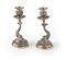 caratterizzati da stelo scultoreo in forma di delfino sulla cui coda si impernia il reggicandela; base circolare gradinata impreziosita da volute e composizioni floreali in rilievo