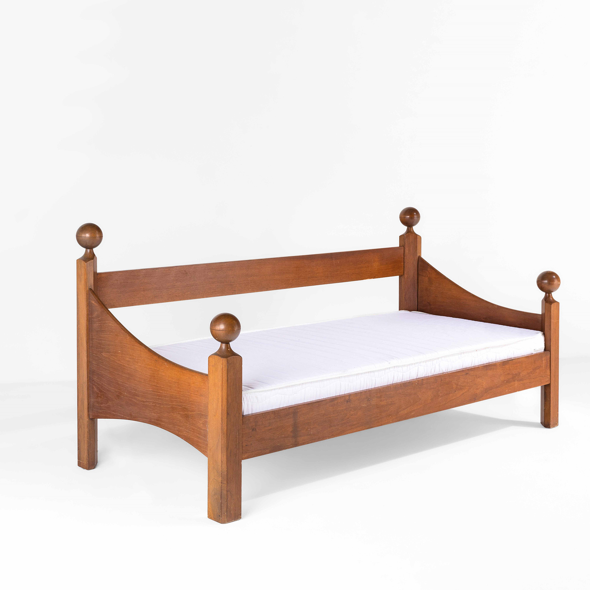 Struttura in legno. Inclusi rete metallica e materasso., Prod. Azucena, Italia, 1959, W. 195 - D. 85 - H. 85 Cm, Bibliografia , Catalogo Originale; A. Dal Lago, Arredamento Moderno, p. 56, figura 25, Fabbri, 1966.