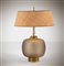 Struttura con base in ottone, corpo in vetro fumè e diffusore in intreccio di canapa., Prod. Stilnovo, Italia, 1950 ca., W. 56 - D. 56 - H. 80 Cm