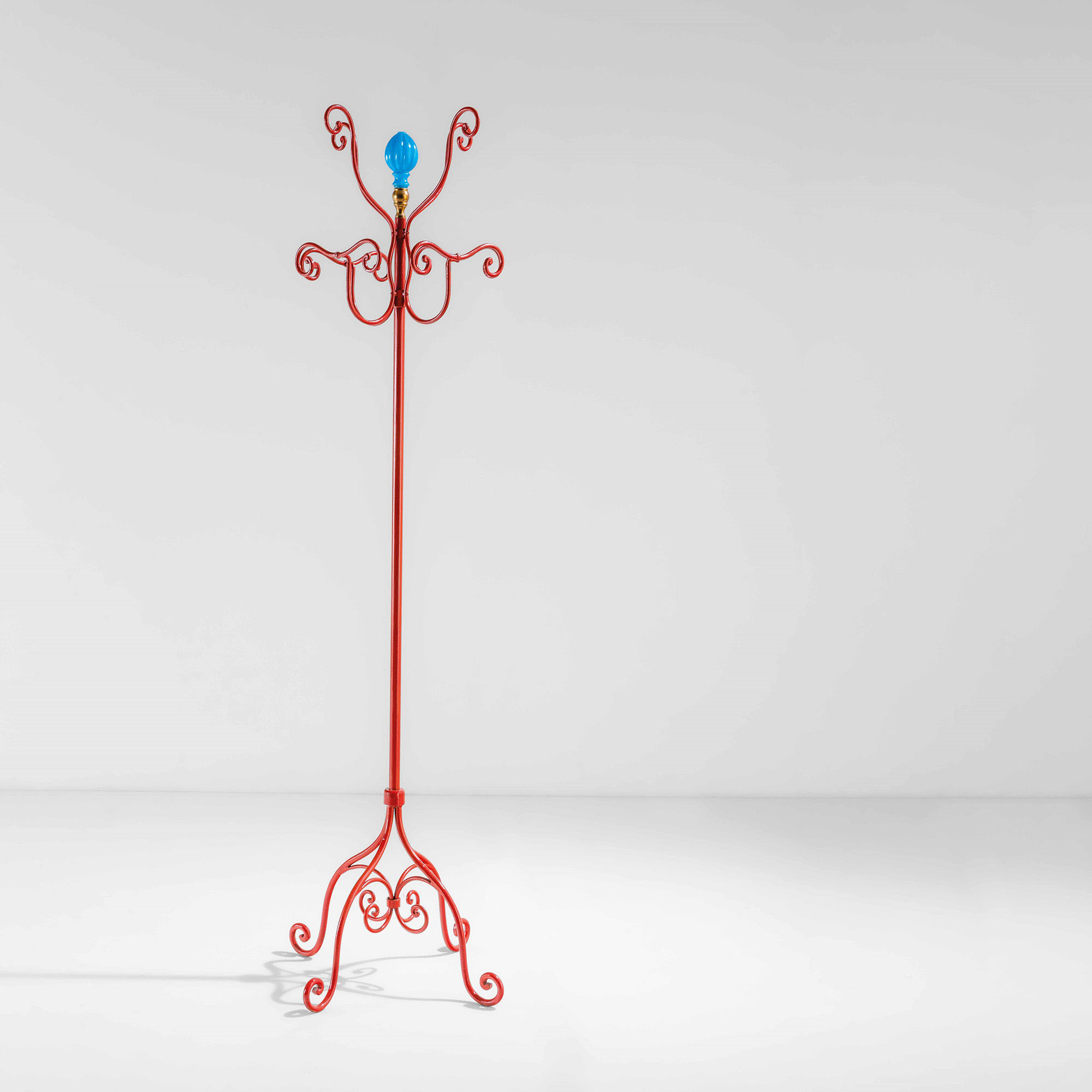 Struttura in ferro battuto laccato, sfera in opalina decorativa e particolari in ottone., Prod. Fornasetti, Italia, 1960 ca., , W. 64 - H. 206 Cm, Bibliografia, B. Fornasetti, Fornasetti La bottega fantastica, p. 514, Electa, 2009.