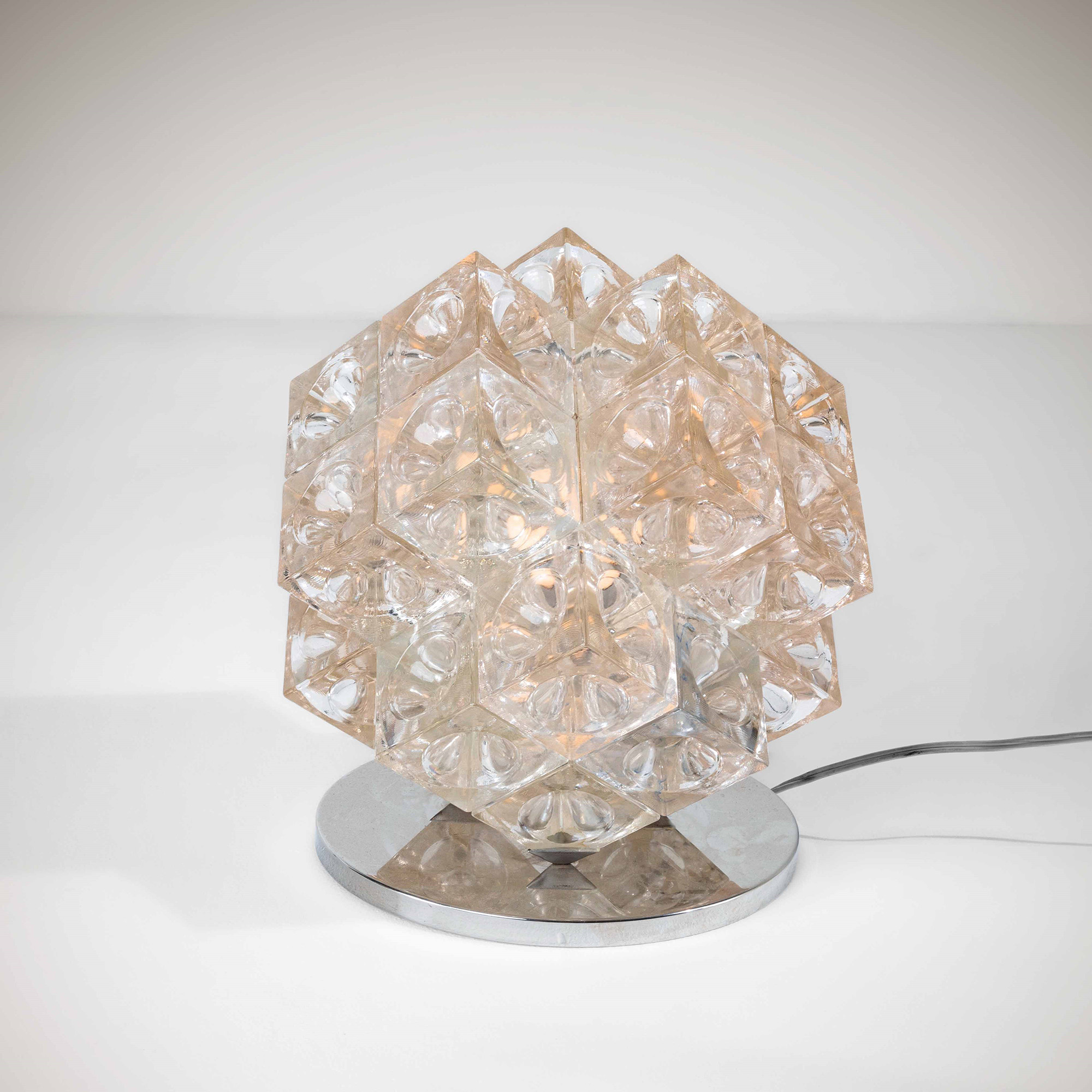 Struttura in metallo cromato e diffusore in vetro., Prod. Poliarte, Italia, 1968, W. 40 - D. 40 - H. 40 Cm, Bibliografia , Catalogo originale.