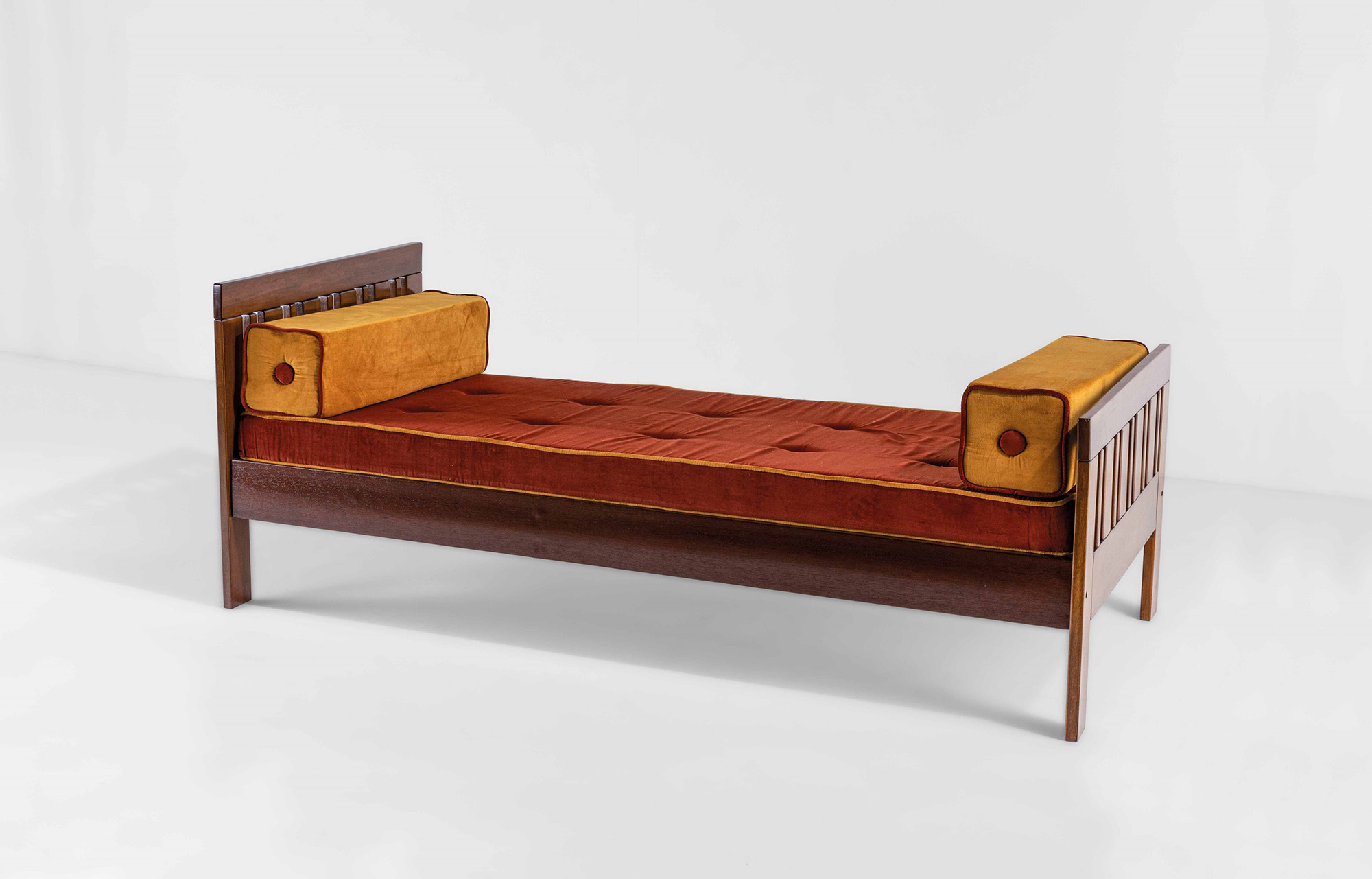 Struttura in legno, cuscini e materasso rivestiti in velluto., Prod. Poltronova, Italia, 1964, W. 86 - D. 202 - H. 70 Cm, Bibliografia , Domus n. 433, dicembre 1965