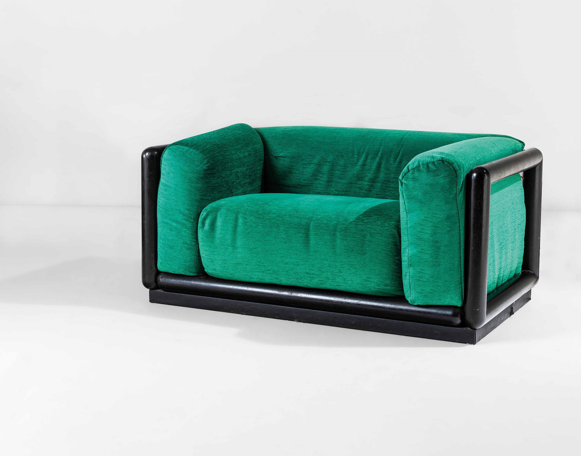 Struttura in legno laccato e rivestimenti in tessuto., Prodotto per la serie Ultrarazionale., Prod. Simon Gavina, Italia, 1973, W. 140 - D. 82 - H. 60 Cm, Bibliografia, G. Gramigna, Repertorio del design italiano per l'arredamento domestico, 1950 - 2000, p. 211, Allemandi, 2003.